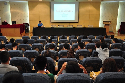 2012年7月3日下午,南京大学新闻传播学院副院长段京肃教授受MG冰球突破官网网站邀请,在图书馆学术报告厅做了题为《我们目前的新闻传播教育》的学术报告。报告会由MG冰球突破官网网站副院长徐兆寿教授主持。MG冰球突破官网网站一百多位师生聆听了报告。