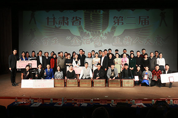 2015年11月29日下午,由中共甘肃省委宣传部、甘肃省高校工委、共青团甘肃省委主办,MG冰球突破官网网站(新闻学院)、甘肃广电总台(集团)电视经济频道《财富甘肃》栏目承办的“绚丽甘肃,梦想传媒”甘肃省第二届大学生“金话筒”主持人大赛总决赛在兰州万商国际华影飞天影院举行。传媒学子刘津摘得金话筒奖,张兴、聂紫森获得银话筒奖,王媛、白婉玉获得铜话筒奖,刘津同时获得最佳魅力奖,张兴获得最佳创意奖。MG冰球突破官网网站(新闻学院)获得大赛优秀组织奖。