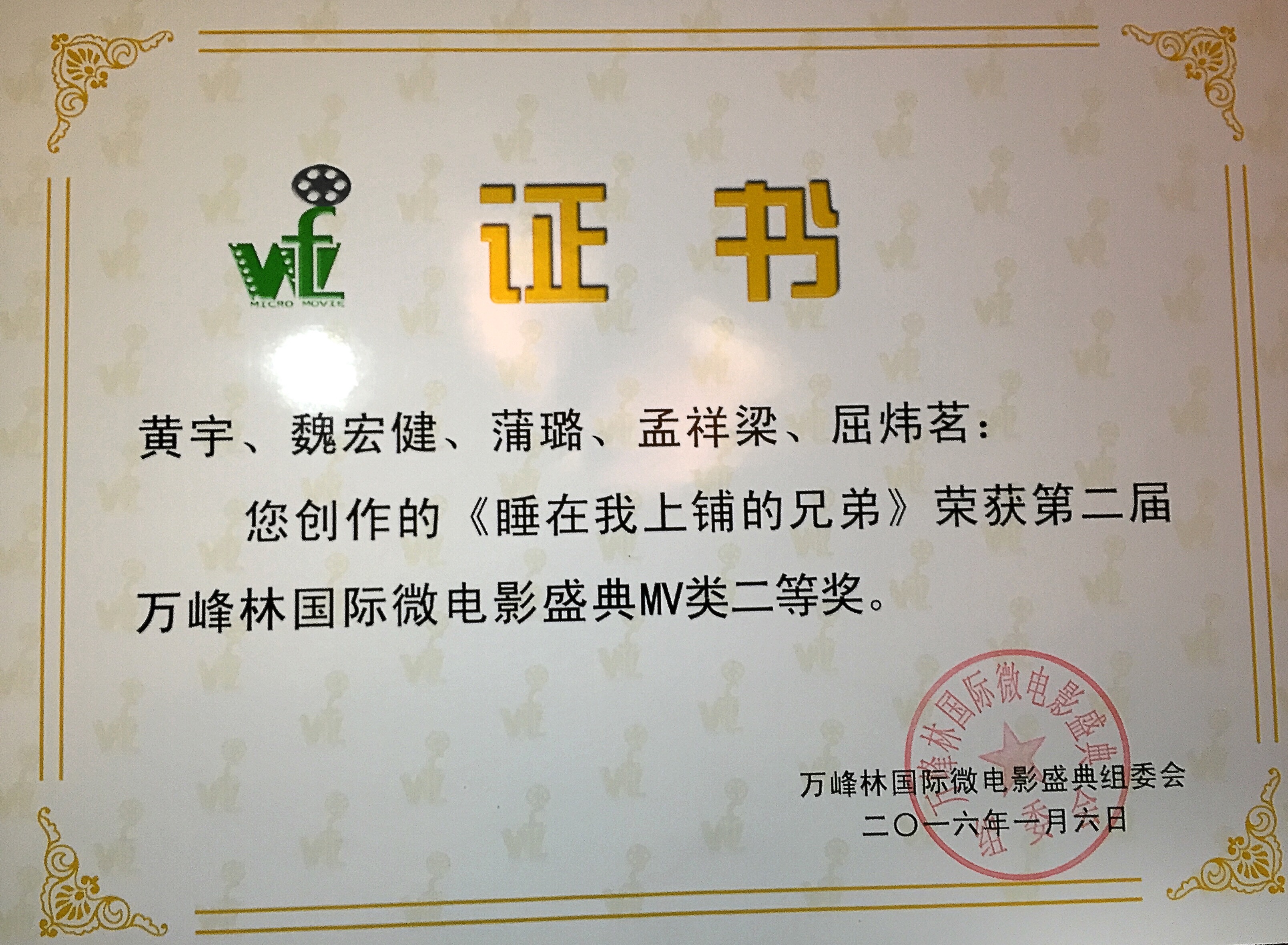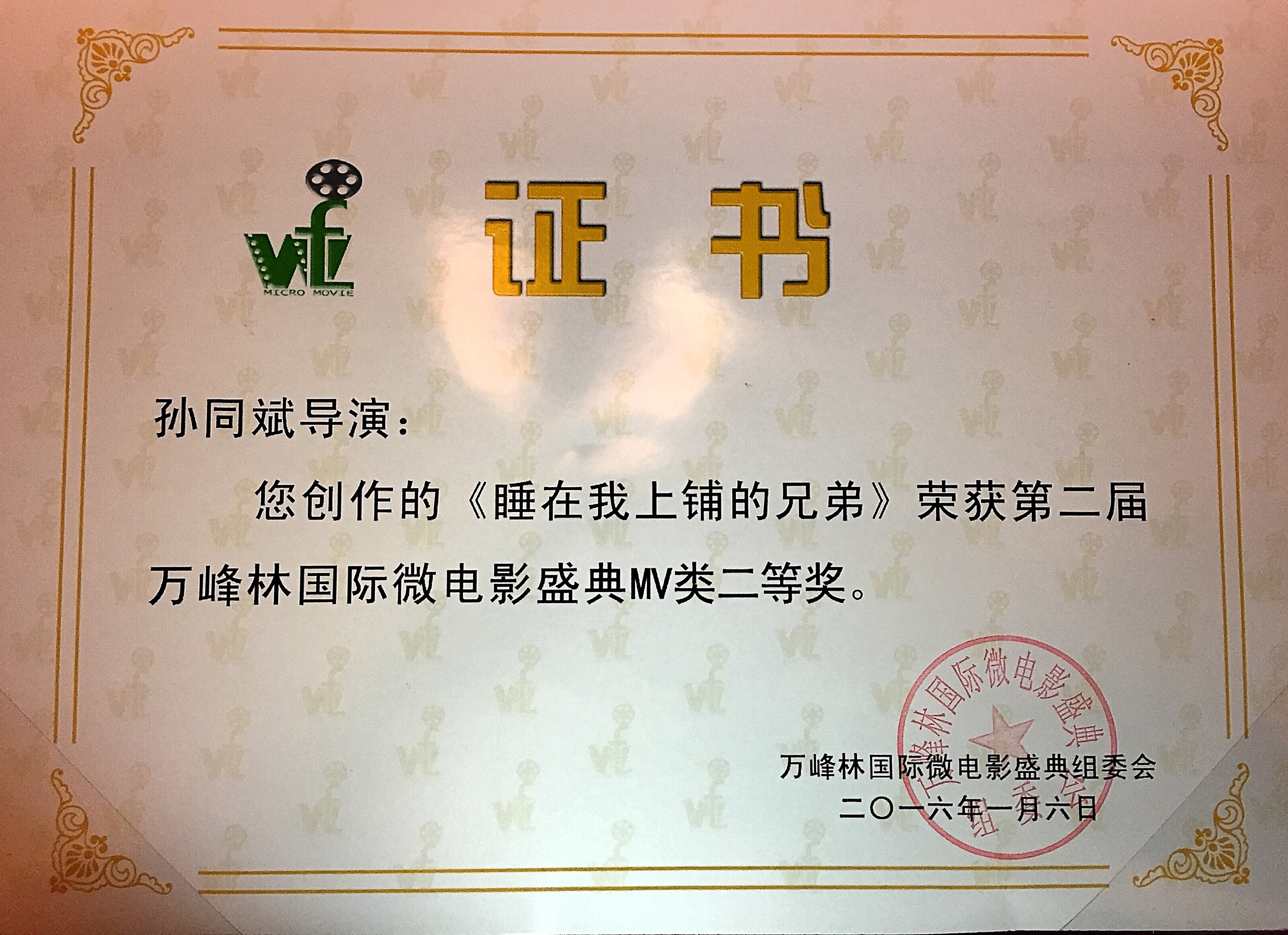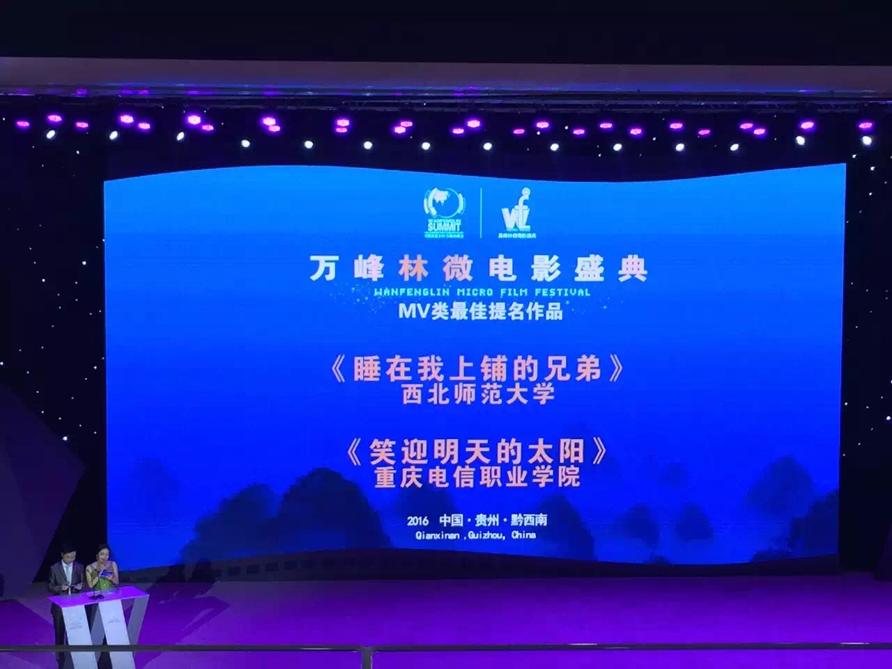 第二届万峰林国际微电影盛典于2016年1月8日至11日在贵州省黔西南州成功举办,冰球官网师生喜获佳绩。孟子为教授的作品《随花而去》获得短片类一等奖,同时获得本届盛典的最佳指导老师奖。由本科生孙同斌担任导演,蒲璐、孟祥梁等同学共同创作的作品《睡在我上铺的兄弟》获得MV类二等奖和最佳MV类作品提名奖。学院党校副书记、副院长王德祥应邀参加本次活动。