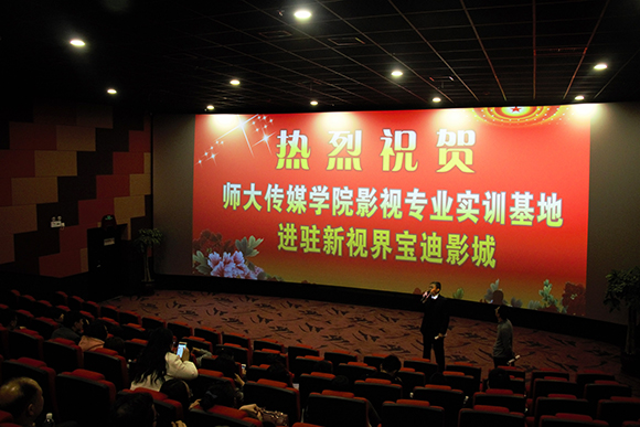 3月8日下午三点,MG冰球突破官网网站(新闻学院)影视专业实训基地挂牌仪式于兰州新视界宝迪影城举行,学院全体老师及部分学生参加了此次典礼。MG冰球突破官网网站(新闻学院)院长徐兆寿与兰州新视界宝迪影城总经理简爱群共同为实习基地揭牌。