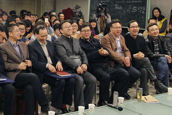 演播厅内座无虚席,很多同学席地而坐。历时三小时的讲座在同学和老师们的依依不舍中结束。