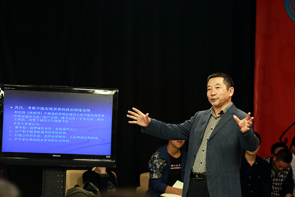 “政治学术本来是一切学术中最重要的学术,其终极(目的)正是为大家最重视的善德,也就是人间的至善。”讲座上,王宗礼教授引由上述亚里士多德的一段话,通过亚里士多德的生平、《政治学》的由来和以“追求至善”为主旨的政治学说等三个方面展开讲解。在谈及《政治学》时,王宗礼教授讲到:所有人类包括其建立的社会团体,他们一切作为的本意都是在追求某种“善果”或“善业”。城邦(国家)作为一种至高而广涵的社会团体,他所追求的善业也应当是至高而广涵的,即为“至善”。而政治学作为研究城邦(国家)的学说,也始终“至善”二字紧密关联。