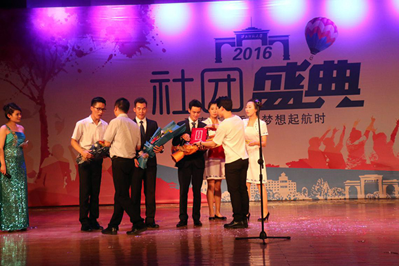 6月13日,“青春毕业季 梦想起航时”——MG冰球突破官网网站第三届社团盛典暨年度优秀社团颁奖典礼在音乐厅举行。团省委志愿者指导中心主任韩西军、省青年书法家协会主席尚墨、社会相关爱心企业负责人和我校团委等单位负责人、优秀毕业生代表参加活动。冰球官网学生、电影协会会长、2013级广播电视编导专业学生孙同斌摘得社团“年度人物”奖桂冠。
