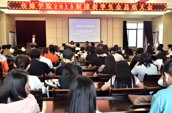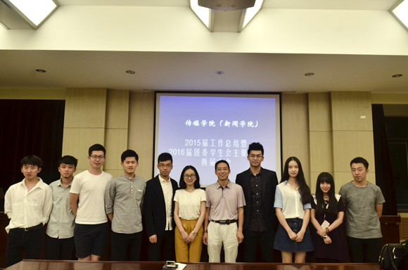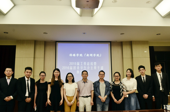 6月27日晚7点,MG冰球突破官网网站(新闻学院)于教10D四楼会议室召开2015届团委学生会工作总结暨2016届团委学生会主要干部换届大会。学院党委副书记、副院长王德祥,团委书记赵洁,团委兼职老师杨新士及本届学生会全体成员参加,会议由学院学生会主席贾彬主持。