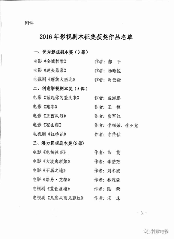 在今年开展的征集活动中,共收到中国梦题材、西部题材、都市题材、农村题材的影视剧本投稿113部,其中电影剧本92部,电视剧剧本21部,经组织国内专家评审,评出“优秀影视剧本奖”3部、“创意影视剧本奖”5部、“潜力影视剧本奖”6部、“推介影视剧本奖”11部。