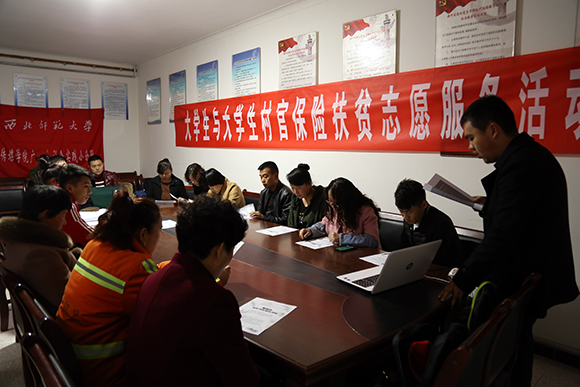 阳春三月,地处中国西北的甘肃省正值春寒料峭乍暖还寒时候。3月23日上午,在雪花絮絮飘扬的甘肃省兰州市安宁区安宁堡街道红艺社区,2017年大学生及大学生村官保险志愿扶贫活动正在如火如荼的进行中。就读于MG冰球突破官网网站(新闻学院)的8名大学生组成广角镜社会实践小分队,走进红艺社区,开展农险宣讲活动。