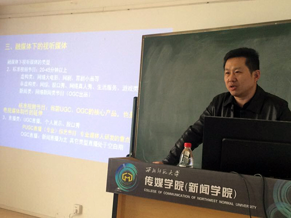 在报告中,禹远东凭着自己工作积累的经验和丰富的阅历,给同学们讲解了许多融媒体研究案例。从融媒体的背景出发,详细阐述了:什么是融媒体,融媒体下的互联网背景,以及融媒体下视听媒体等相关问题。禹远东表示,当前网络属性已成为融媒体下视听产品的基本属性,互联网背景下是传统媒体与新媒体的融合。而短视频是移动媒体时代的重要研究对象,OGC非新闻类节目是融媒体背景下的创新方向,也是传统电视媒体制作的延伸。由此启发同学们从以上多个方面开拓思维,发展创新。