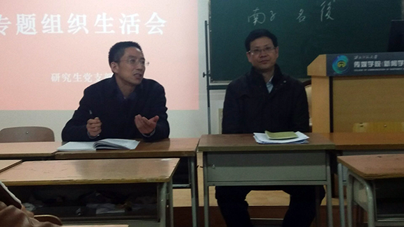 王德祥提出一定要发挥班级团支部的作用,各团支部书记要负起责任,做好党的后备军。他希望研究生党员珍惜身份、珍爱组织,率先垂范的遵守学院规章制度,发挥好先锋模范作用。