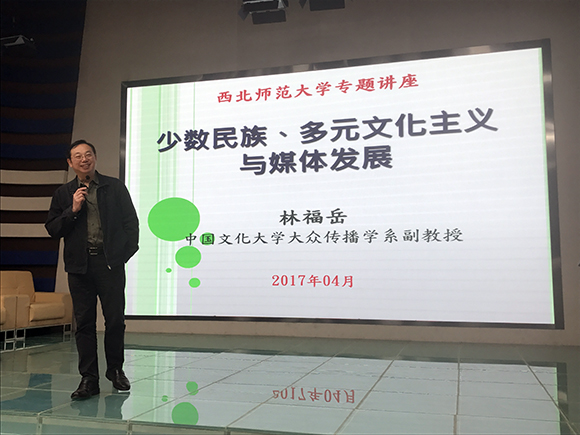 4月13日上午,应MG冰球突破官网网站(新闻学院)邀请,台湾中国文化大学大众传播学系新闻学博士、中华传播学会理事林福岳做了题为《关于少数民族、多元文化主义与媒体发展》的学术报告。杨华副院长、杨光祖教授以及研究生和本科生100余人听取报告。新闻系主任石培龙副教授主持报告会。