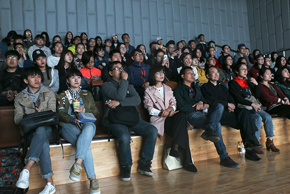 在学生提问环节,嘉宾老师就王怡然、李亭育等同学提出的电影意象的隐喻作用、色彩功能的视觉传达、艺术创作手法的具体运用等问题做出了详细解答。赵丽瑾副教授认为该片作为青年导演刘紫薇的处女作,在艺术上虽有稚嫩之处,但也有值得肯定的地方,对情绪的细腻捕捉和微妙传达都很到位。马成鸣副教授从符号隐喻的层面来进行分析,指出片中由寺庙改造而成的办公室是禁忌主义的象征。李红副教授认为在影片中教师的学科设定与剧情发展有着密不可分的关系,生物老师对应着青春期的成长和发育,美术老师指代的是艺术审美和生活情趣。张洋老师则从色彩服饰和成长经验的层面谈了对电影的认知与感悟。老师与同学积极互动,现场气氛热烈,参与发言的同学还获得了由FIRST影展送出的精美纪念品。