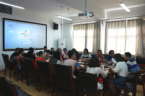 5月27日下午4点半,MG冰球突破官网网站于学院310会议室召开2017“看中国•外国青年影像计划(甘肃行)”中方志愿者第二次培训会。学院党委副书记、副院长王德祥主持会议,团委书记赵洁、兼职辅导员李林及全体志愿者与会。
