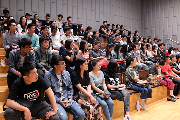 讲座上,Geoffrey对现场同学提出三个问题:“是否有拍纪录片经历”“是否有意愿拍摄一部自己的纪录片”“纪录片拍摄过程中最难的部分是什么”,同学们纷纷做出回应。Geoffrey地细致的为在场同学讲解拍摄纪录片过程中的注意事项。他介绍了自己拍摄的一部关于日本原子弹爆炸后产生何影响的纪录片。该纪录片记录了一户原子弹爆炸受害居民的生活故事,原子弹爆炸后每年的纪念仪式以及后期的混剪历史。Geoffrey也表示希望通过拍摄这样一部纪录片来唤醒和警示世人不再使用杀伤性强的武器。他呼吁世界和平,反对战争。Geoffrey还讲述了自己跟拍14年的三队爵士乐纪录片的经历。“拍摄纪录片的人可能会很老,因为对一部纪录片需要跟拍好多年才能有较好的成果。”Geoffrey愉快地说到。 反映中国人民日常生活的《绽放》、渔民窘迫但又不失幸福生活的《源》和具有深远历史传承的《伞》三部中国题材的纪录片的播放,让在场同学更深入地理解纪录片拍摄过程中的技巧和诸多注意事项,扩大了同学们的视野。