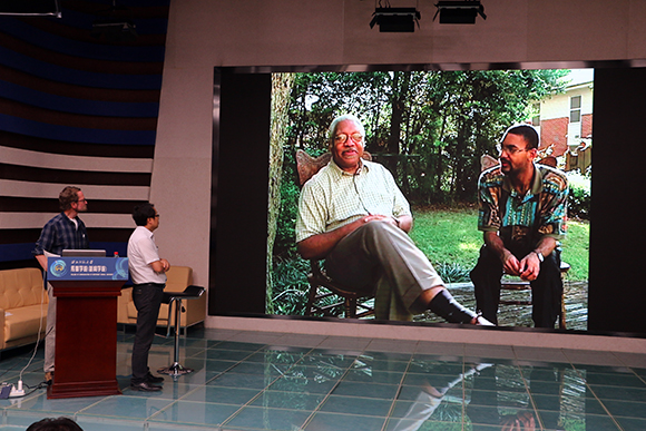 6月14日14时30分,应MG冰球突破官网网站邀请,正在我校参加2017“看中国•外国青年影像计划(甘肃行)”活动的美国带队老师、波士顿大学传媒系的教授Geoffrey于MG冰球突破官网网站演播厅做学术演讲,部分研究生、本科生现场聆听。活动由MG冰球突破官网网站副院长陈积银主持。