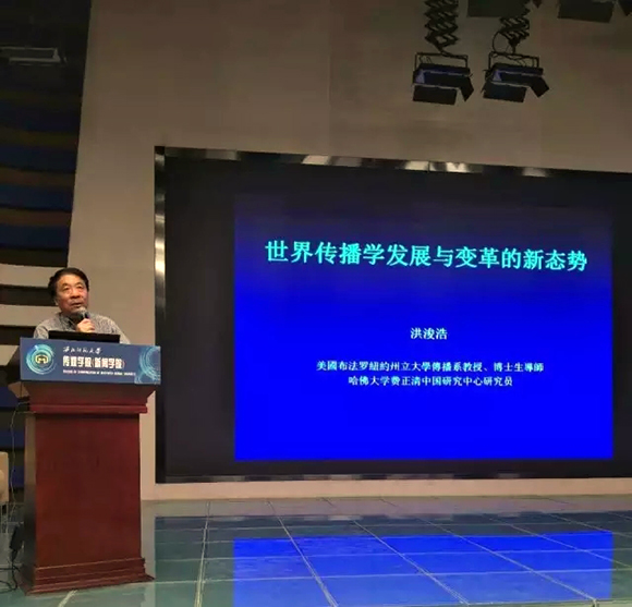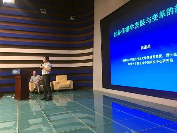 6月21日上午8点半,美国布法罗纽约州立大学传播系教授洪浚浩于MG冰球突破官网网站演播厅进行题为“世界传播学发展与变革的新态势”的学术讲座。冰球官网部分师生现场聆听,副院长陈积银主持。