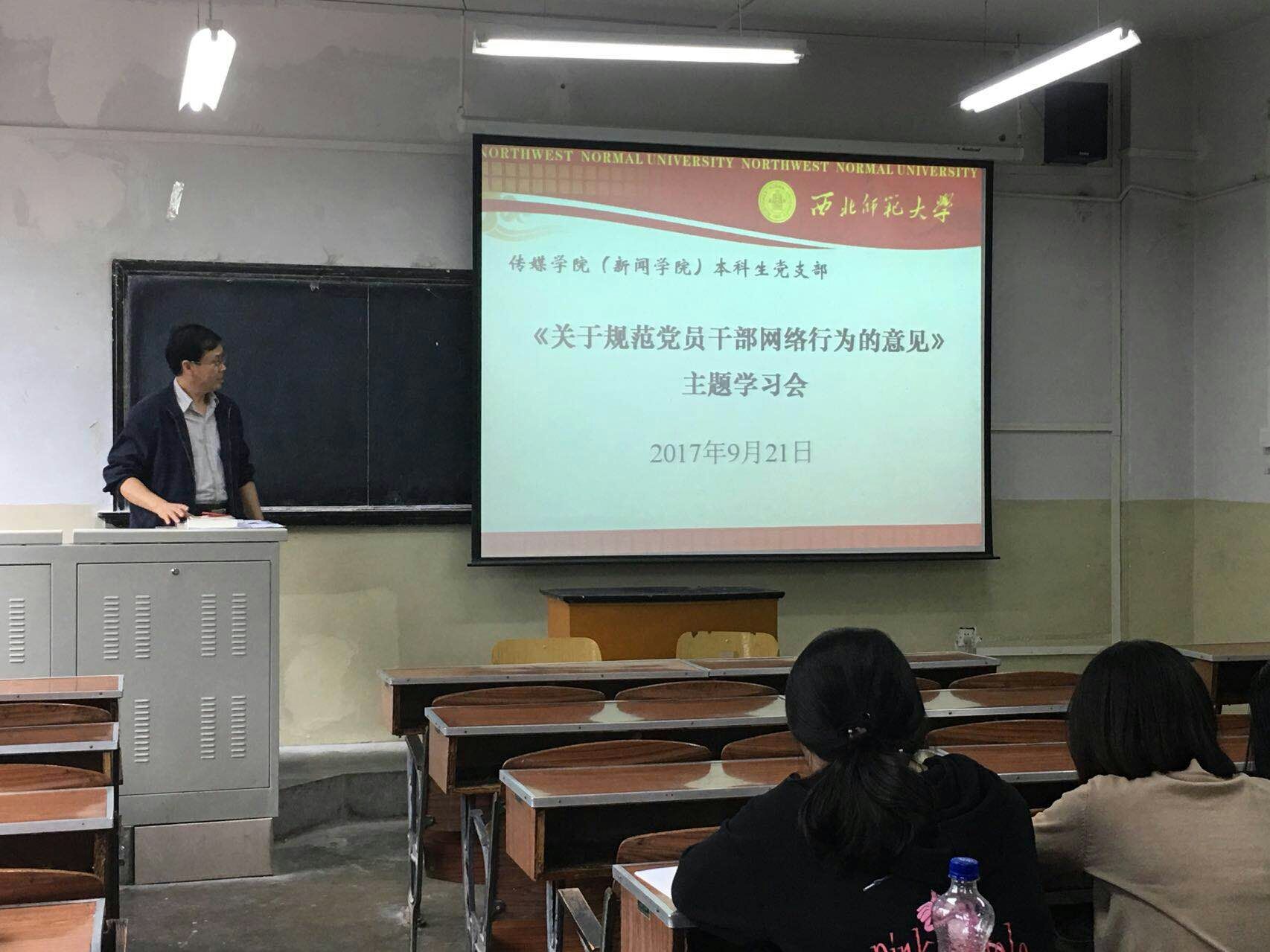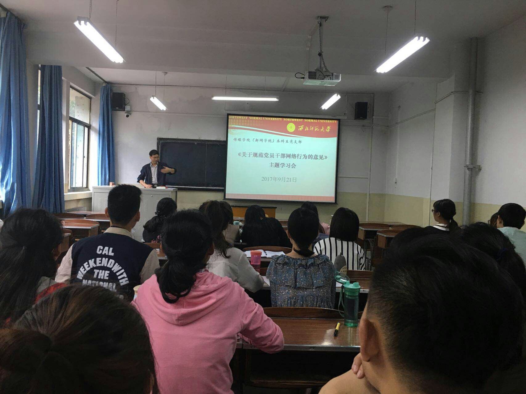 最后,刘书记以部分党员传播各类谣言,受到处罚为例,告诉与会党员,作为传媒专业的学生,一定要积极践行社会主义核心价值观,规范网络行为,传播正能量。坚决做到“不造谣、不传谣、不散布、不转发”,不组织、参加各类非法、反动的网络论坛活动。其次要努力学习,做好表率,以高标准严格要求约束自已,清清白白做人,干干净净做事,不仅要从理论上深刻认识马克思主义新闻观,更要在实践中努力践行马克思主义新闻观。