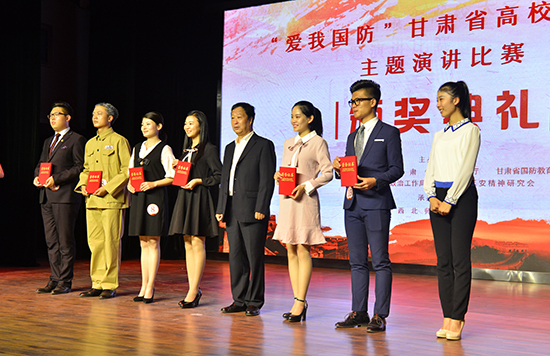 2017年“爱我国防”甘肃省高校大学生主题演讲比赛,由省委宣传部、省教育厅、省国防教育委员会办公室、省军区政治工作局、省延安精神研究会联合主办,西北师大承办。