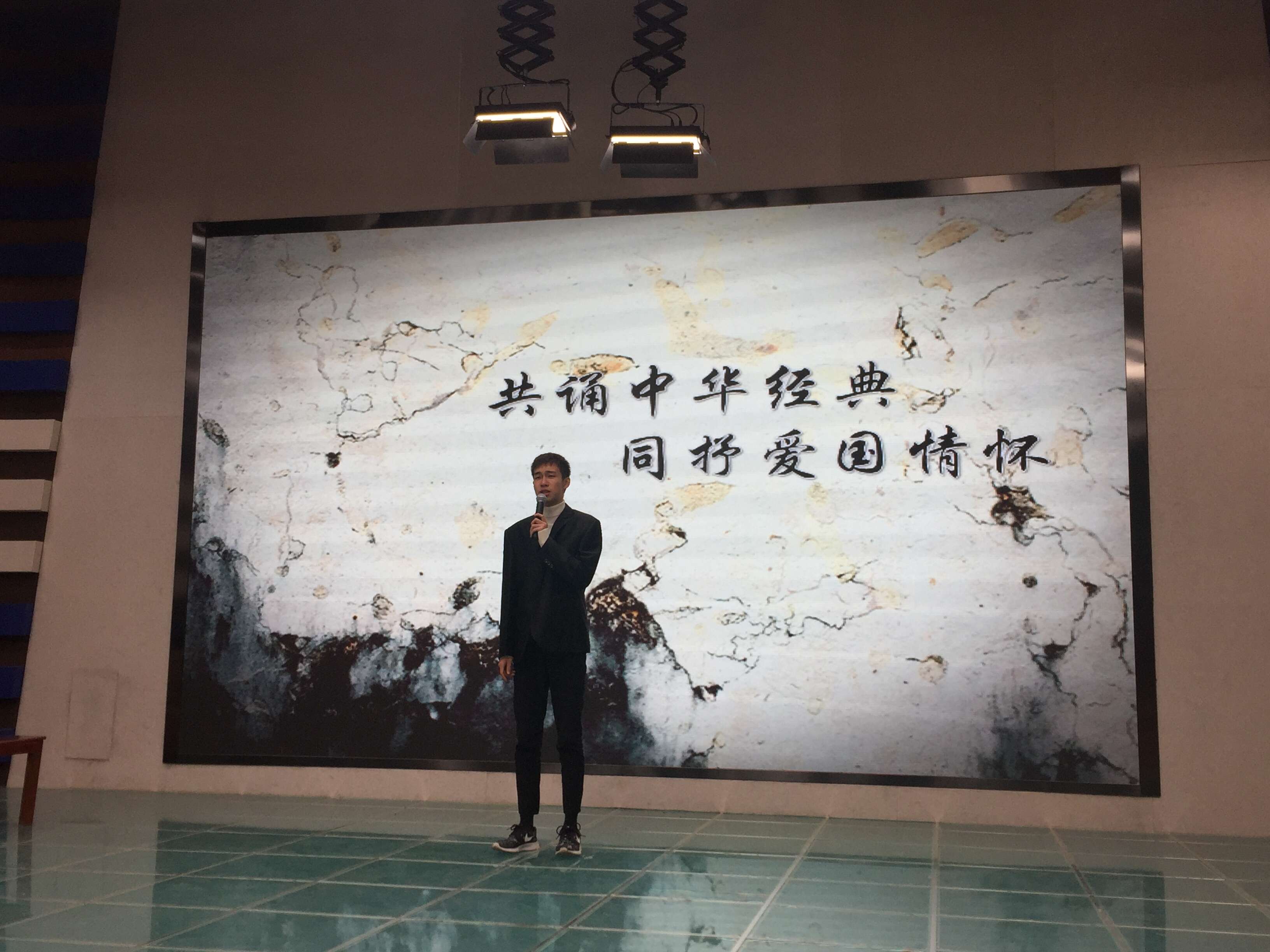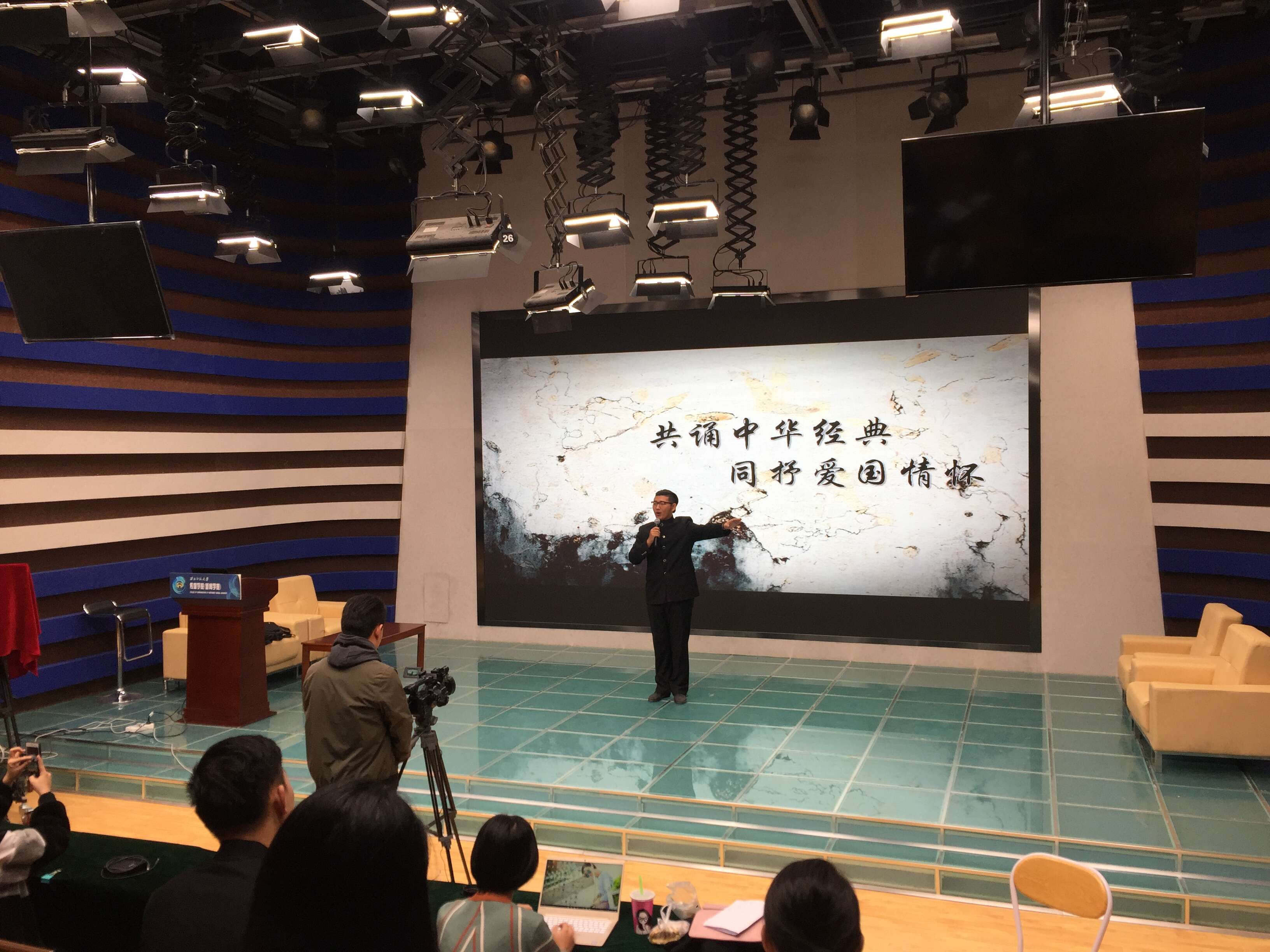 在录制期间,学院党委副书记、副院长王德祥到场观看同学们的诵读,并提出宝贵意见。