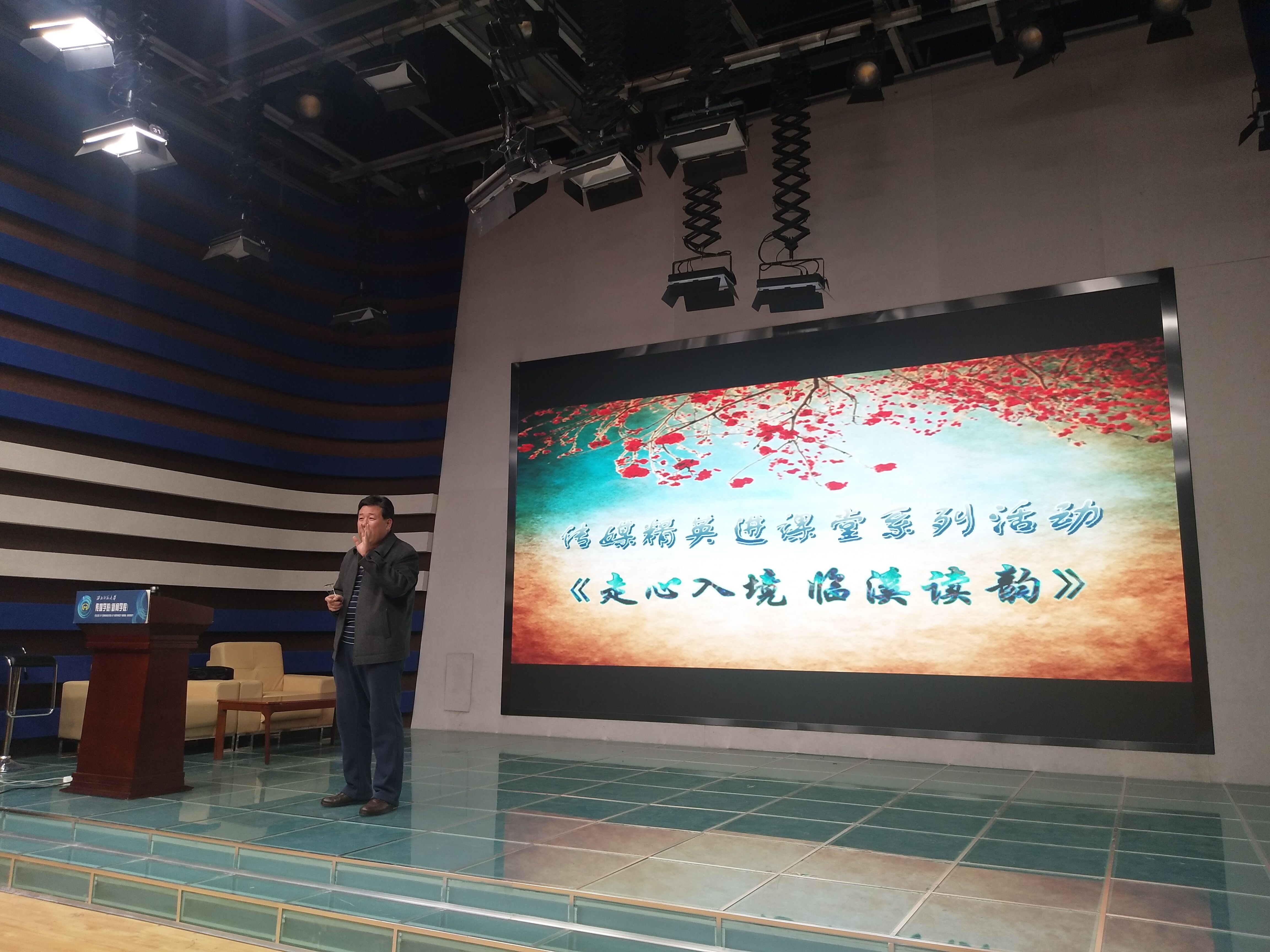 他以《致橡树》《琵琶行》等经典稿件为例讲了朗诵应该注意的细节,在诵完《站在河流的边沿》一文后,临溪老师着重讲了对象感的重要性,提出“没有对象就不要张嘴”和在广播中要“目中无人但心中有人”的观点。