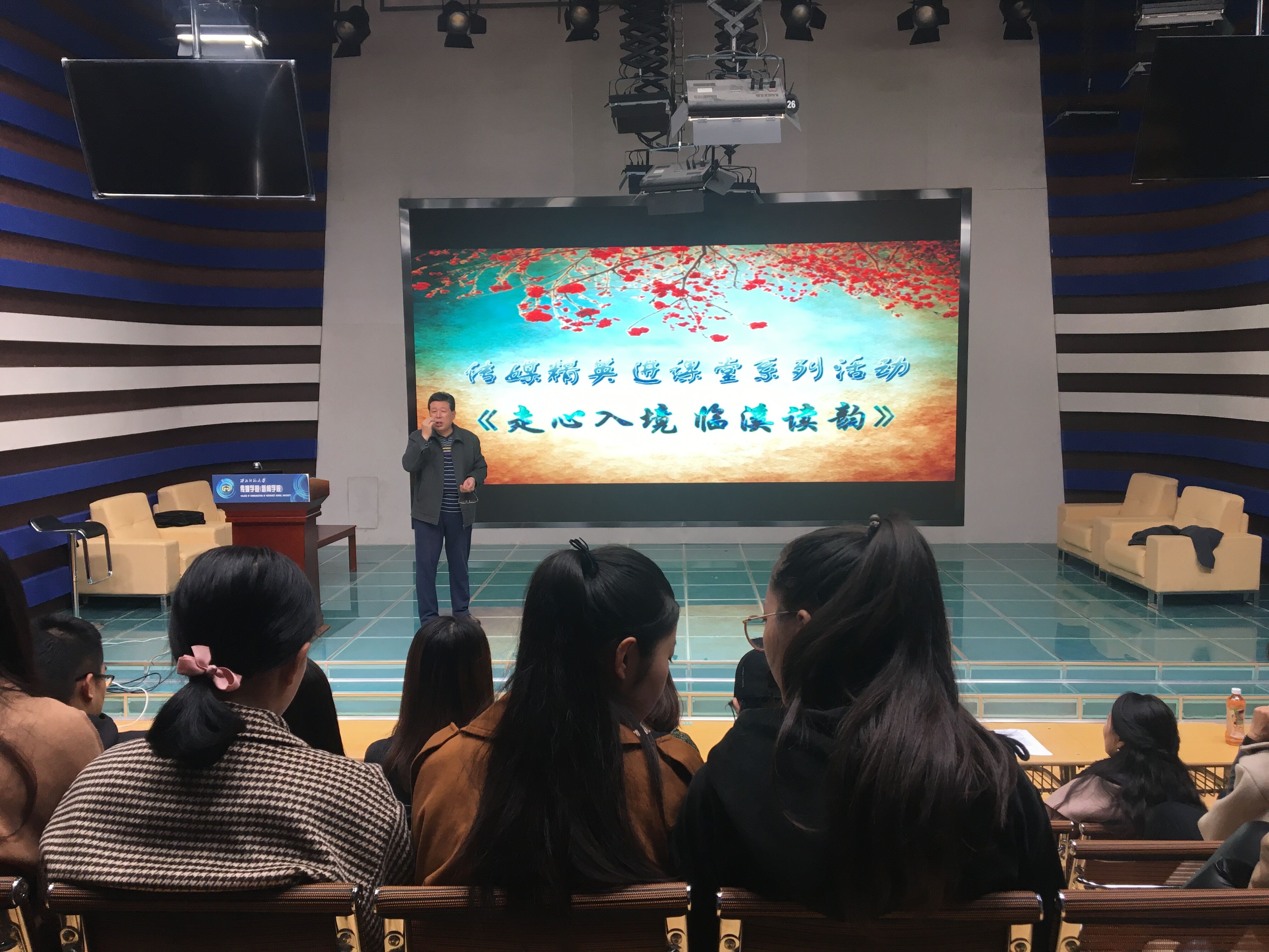 10月26日上午,应MG冰球突破官网网站邀请,甘肃省著名播音员,中宣部“五个一工程奖”和全国“广播文艺大奖”获得者临溪老师走进“传媒精英进课堂”活动,在MG冰球突破官网网站演播厅做了题为《走心入境 临溪读韵》的分享,为播音班学生上了一课。冰球官网播音与主持艺术系全体同学参加此次学习,系主任李丽老师聆听此次分享。