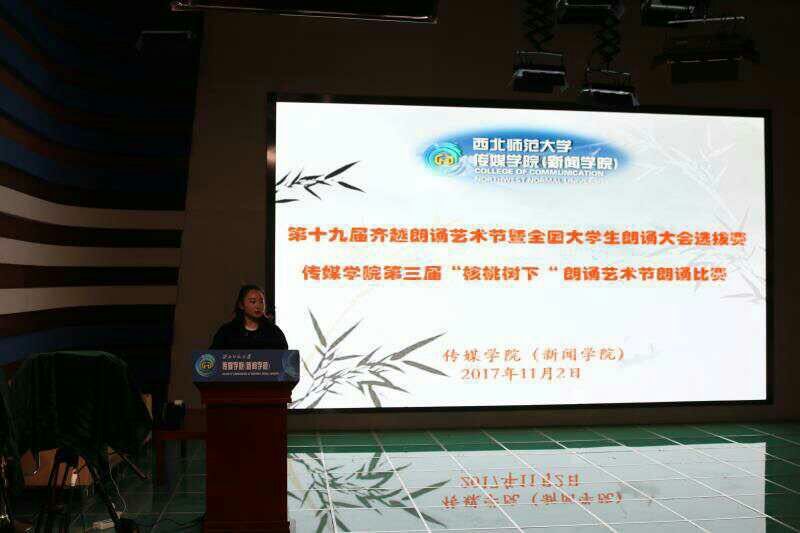 11月2日上午,MG冰球突破官网网站于演播厅举办第十九届齐越节选拔赛暨第三届“核桃树下”朗诵艺术节比赛。比赛邀请西北民族大学何燕华老师,我校新闻中心广播站郑绍婷老师,冰球官网播音与主持艺术系主任李丽老师和杜臣弘宇老师担任评委。