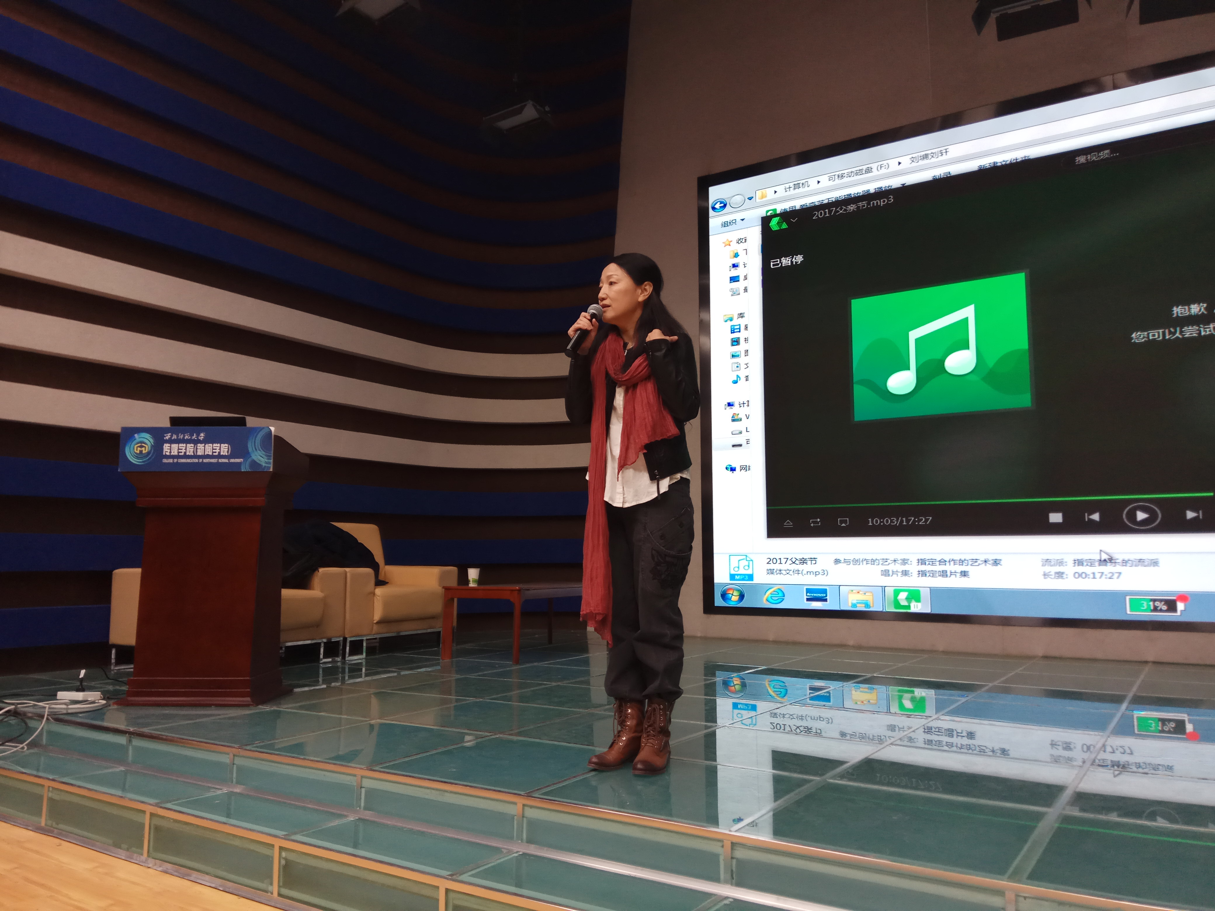 首先,周劲翔(周微)老师用自己工作的经历,以“读到之处、悦在其中”的轻松方式,向大家传递主流文化观及阅读的力量。她先用图片的方式讲述了自己职业生活中的丰富经历,特别是《轻阅读》节目中的采访技巧、采访感受,每一张图片背后都有深远的意义和情感。比如在采访作家毕飞宇时,周劲翔(周微)老师做了大量的准备,她了解到作家毕飞宇的代表作《推拿》中有父亲失明的元素,于是,她以父亲眼睛失明为切入点,拉近了与采访嘉宾的距离。在采访诗人舒婷时,周劲翔(周微)老师朗诵了一首她的代表作《致橡树》,一下子使双方距离更近,采访也更为愉快。“采访时要找到嘉宾的兴奋点”,“如果采访对象是一个健谈的人,一定要让他(她)顺着说下去。”周劲翔(周微)老师说。