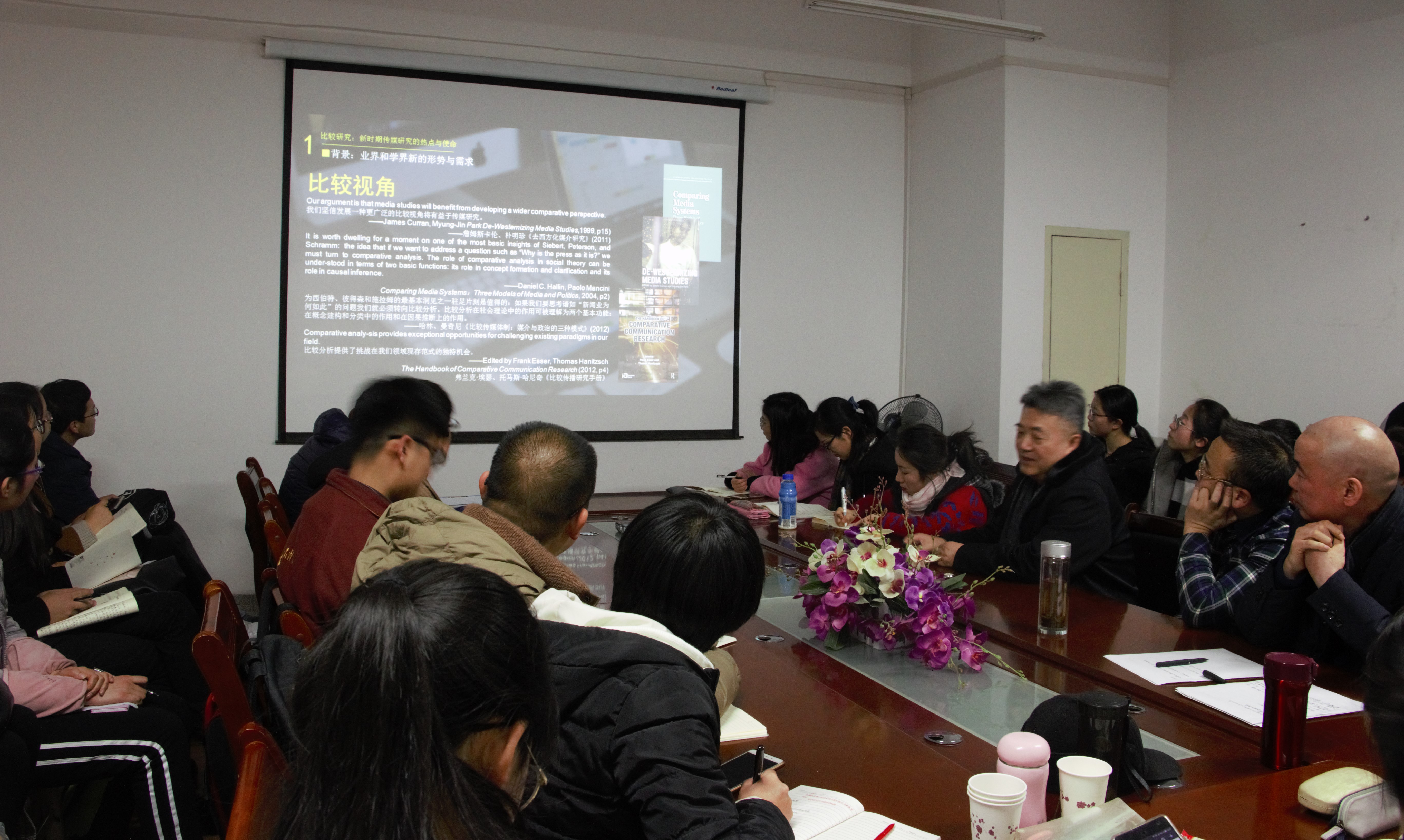 12月15日下午4:30,同济大学艺术与MG冰球突破官网网站余克光教授走进MG冰球突破官网网站“六艺讲坛”,在306会议室为学院师生带来一场题为《传媒及传播比较研究的历史批判与未来展望》的学术报告。本次讲座由任志明老师主持,新闻系主任石培龙,部分新闻专业研究生和本科生参加。