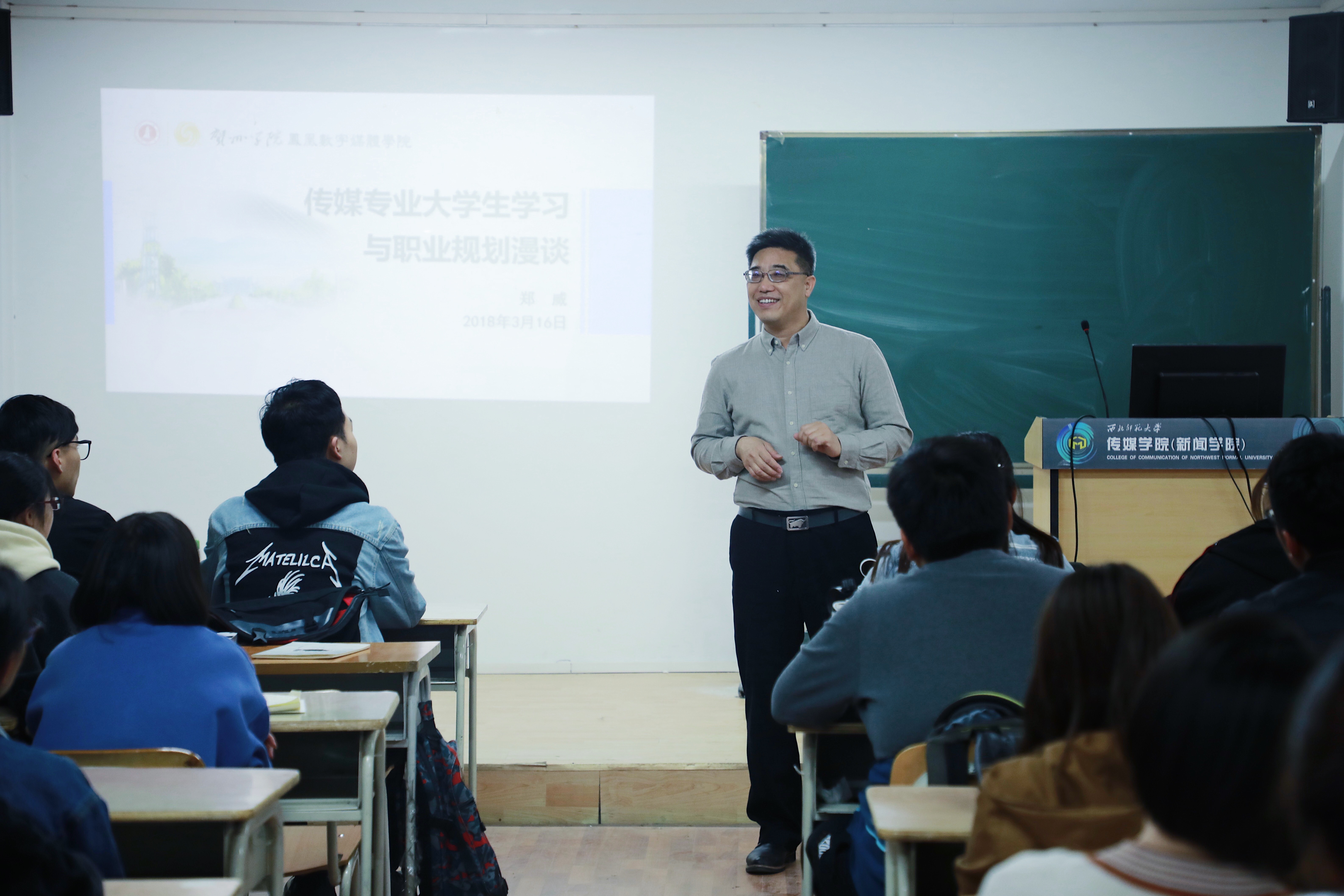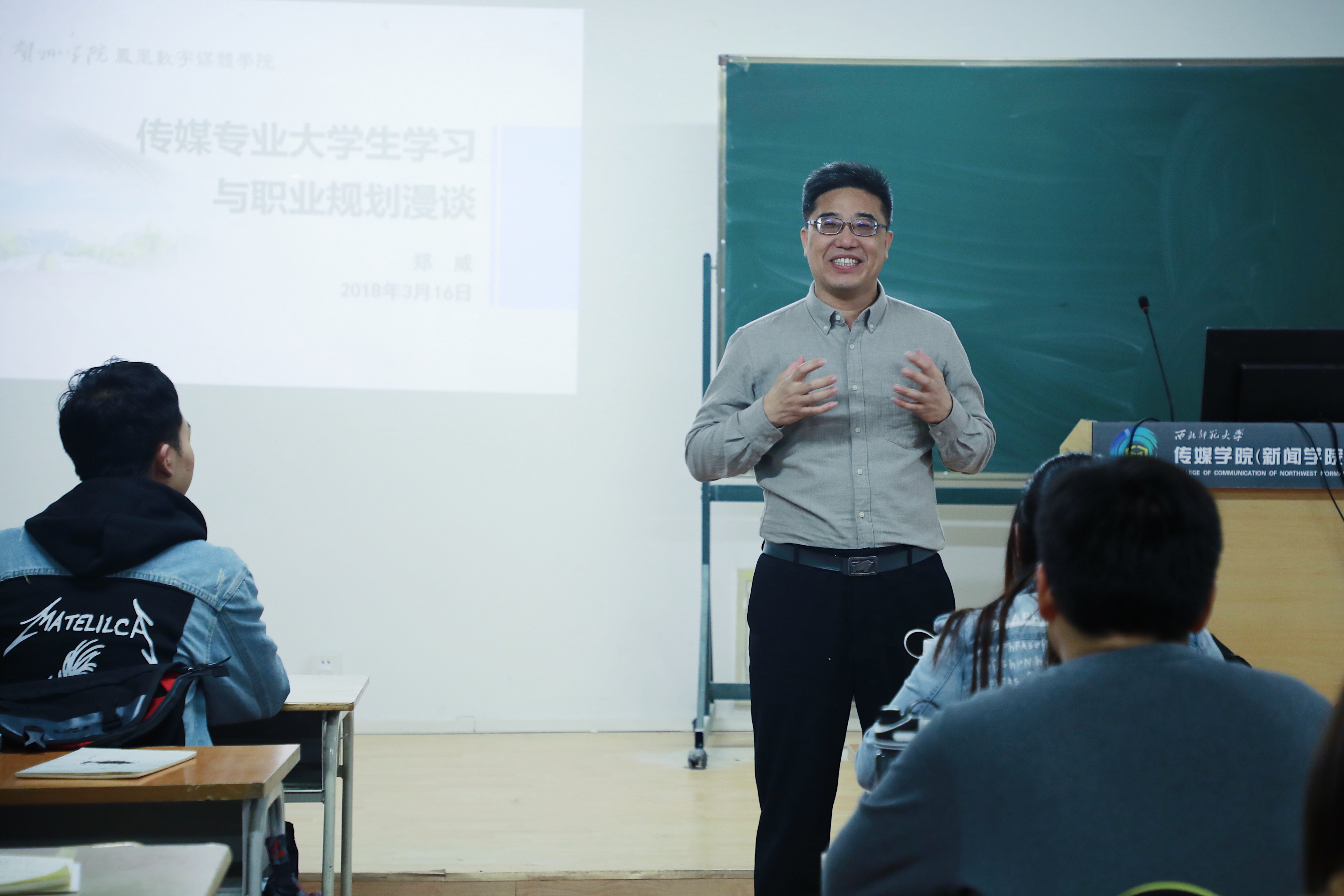 3月16日,贺州学院文化与MG冰球突破官网网站(凤凰数字媒体学院)院长、副教授郑威在冰球官网201教室与2016级广播电视编导专业的同学们进行了一场座谈会。会议开始之前,冰球官网院长徐兆寿与全体同学对郑院长的到来表示了热烈的欢迎。
