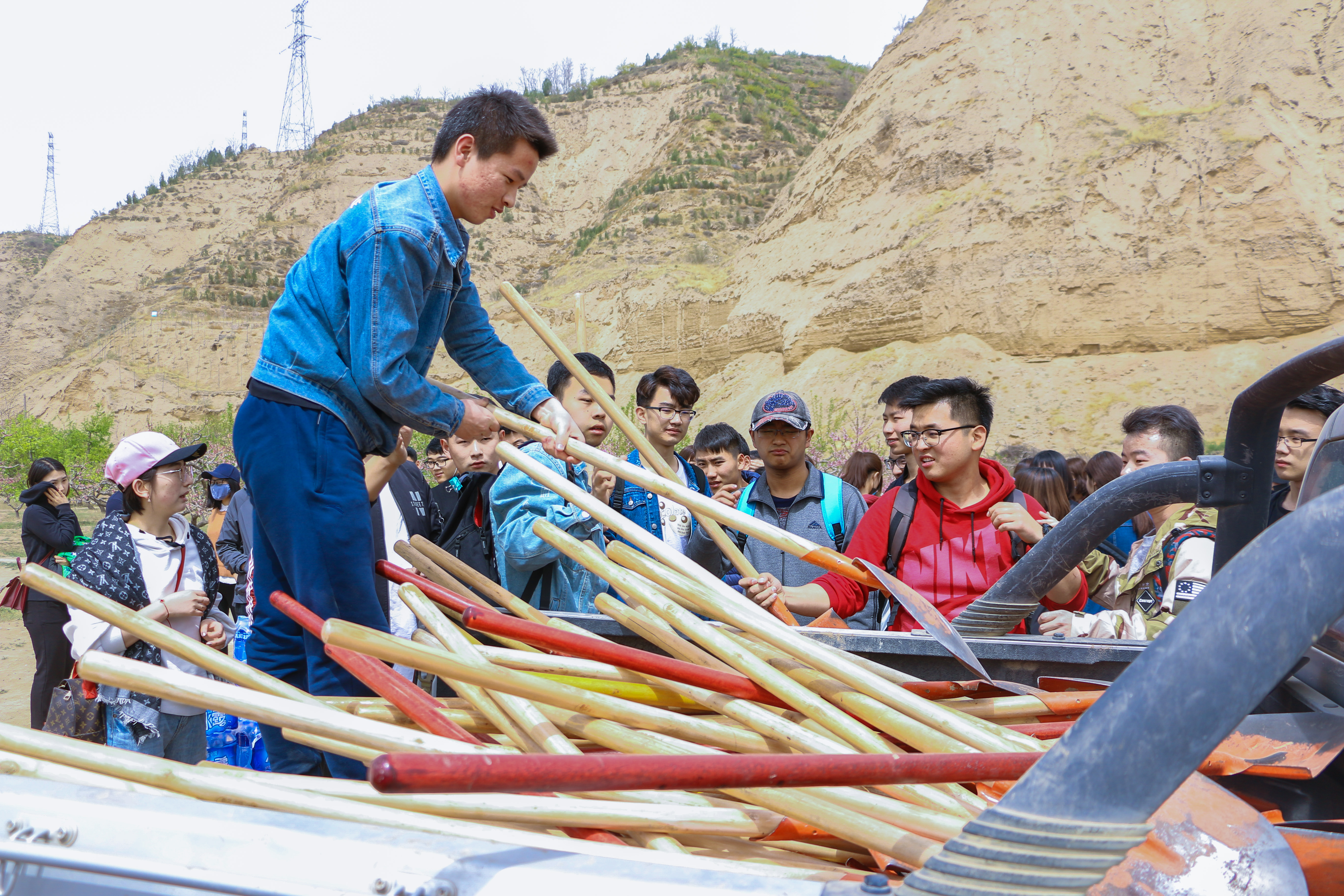 4月10日,MG冰球突破官网网站组织100多名学生到新校区北山参加义务植树活动。冰球官网党委书记刘永雷、团委书记赵洁和辅导员袁会敏、翟紫君、袁文静和部分老师参加了本次活动。