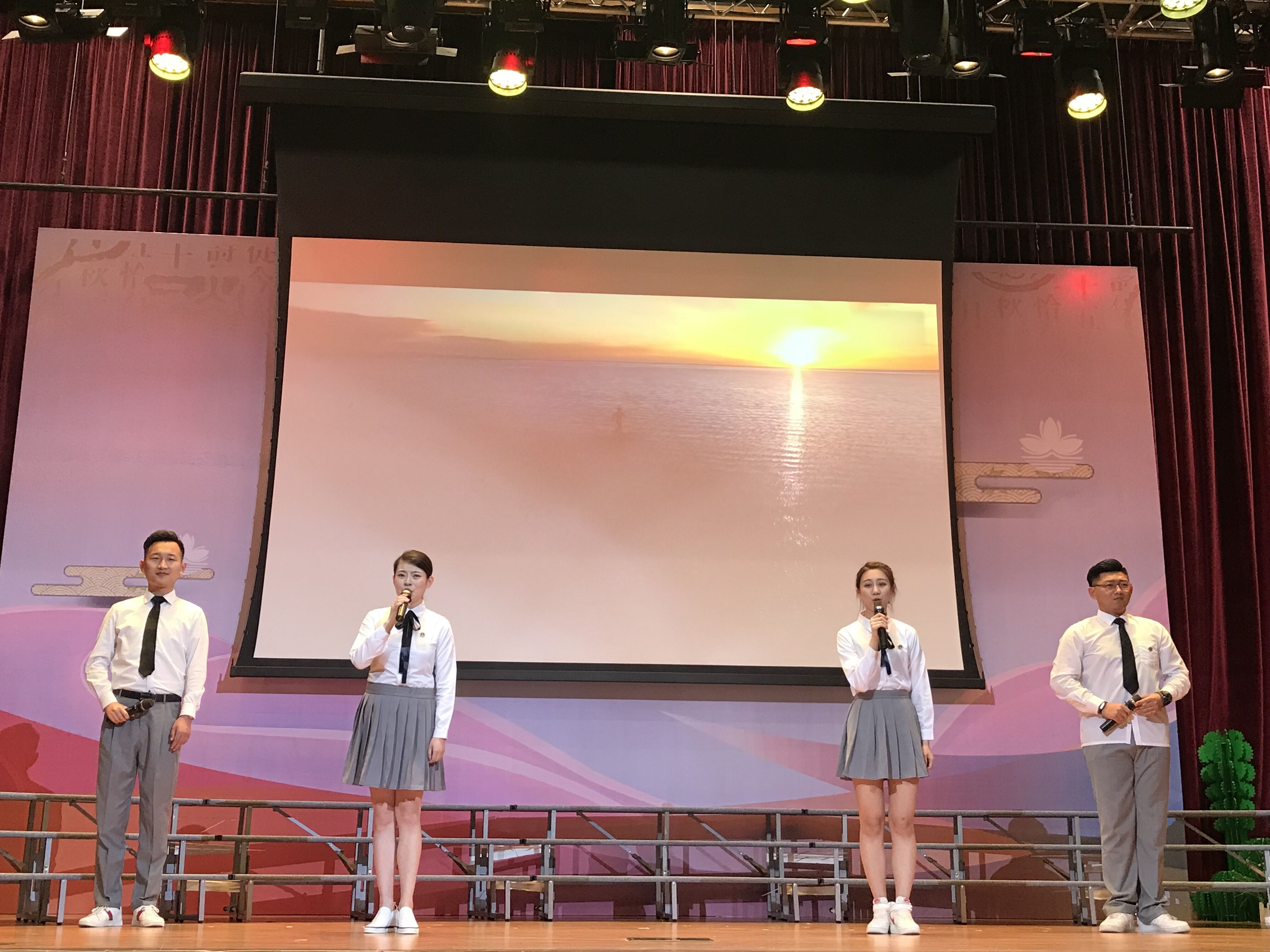 传媒学子与南京艺术学院、南京农业大学学生同台演出。我们选送的节目舞韵诗朗诵《大梦敦煌》,集朗诵、舞蹈于一体,通过对古丝绸之路历史盛衰的追溯,展现了丝路文化辉煌的历史和不朽的艺术魅力,富有西北文化特色的节目,深受港澳观众的喜爱。教育部领导及港澳师生对节目给予充分肯定,对同学们高亢而富有情感的朗诵给予了高度评价。展演活动时间紧、任务重,MG冰球突破官网网站师生和兄弟院校师生一起,精心准备,悉心排练,认真对待每一场演出,把最饱满的热情和最阳光的状态呈现给港澳观众。