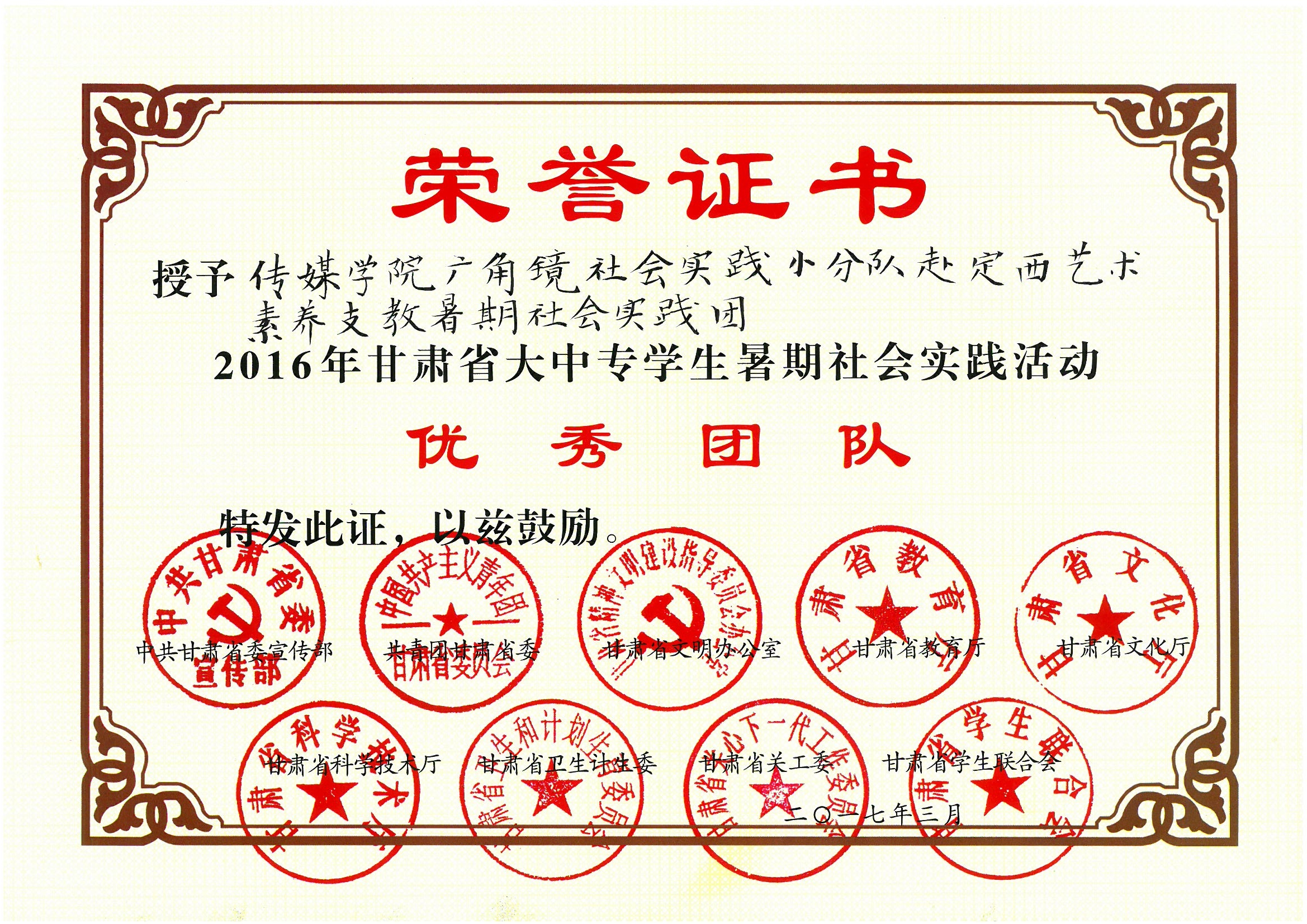 竞赛活动立名。学院积极创造条件、挖掘资源,主办、承办、联办、协办了一些列竞赛好活动。主办了甘肃省大学生“金话筒”主持人大赛、甘肃省大学生朗诵大赛、“甘肃广电网络杯”微电影网络剧大赛、嘉峪关国际短片节大学生单元等省级赛事。积极组织学生参加北京大学生电影节、万峰林国际微电影盛典、甘肃省大学生DV创作大赛、教育部齐越朗诵艺术节、中央人民广播电台“夏青杯”朗诵大赛、中国兰州主持人大赛、甘肃省大学生演讲比赛等省内外文化艺术活动,在话剧演出、主持人大赛、朗诵大赛、DV大赛、诗会、演讲比赛、电影电视节等文化艺术活动中屡屡获大奖,得佳绩,展风采,促成才。学生个人拍电影、写专著、出专辑,成果斐然。不少学生出版了学术著作、文学艺术作品,在核心刊物发表理论文章,在《光明日报》《中国青年报》《工人日报》等报刊刊发新闻报道。