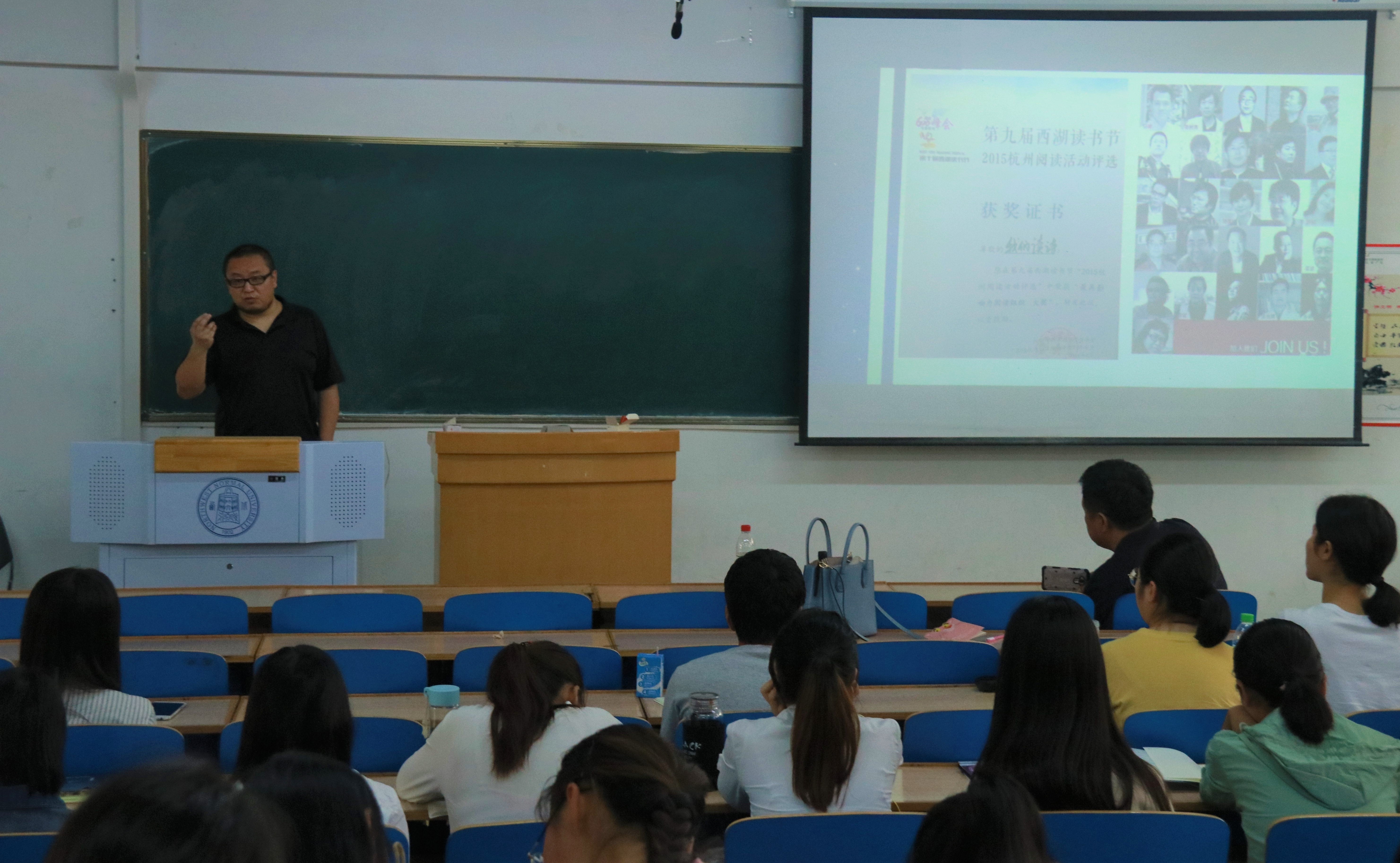 随后,张海龙老师继续开展讲座。张海龙老师为西北师大中文系校友,著名作家,媒体人,现为杭州日报影视工作室主任。