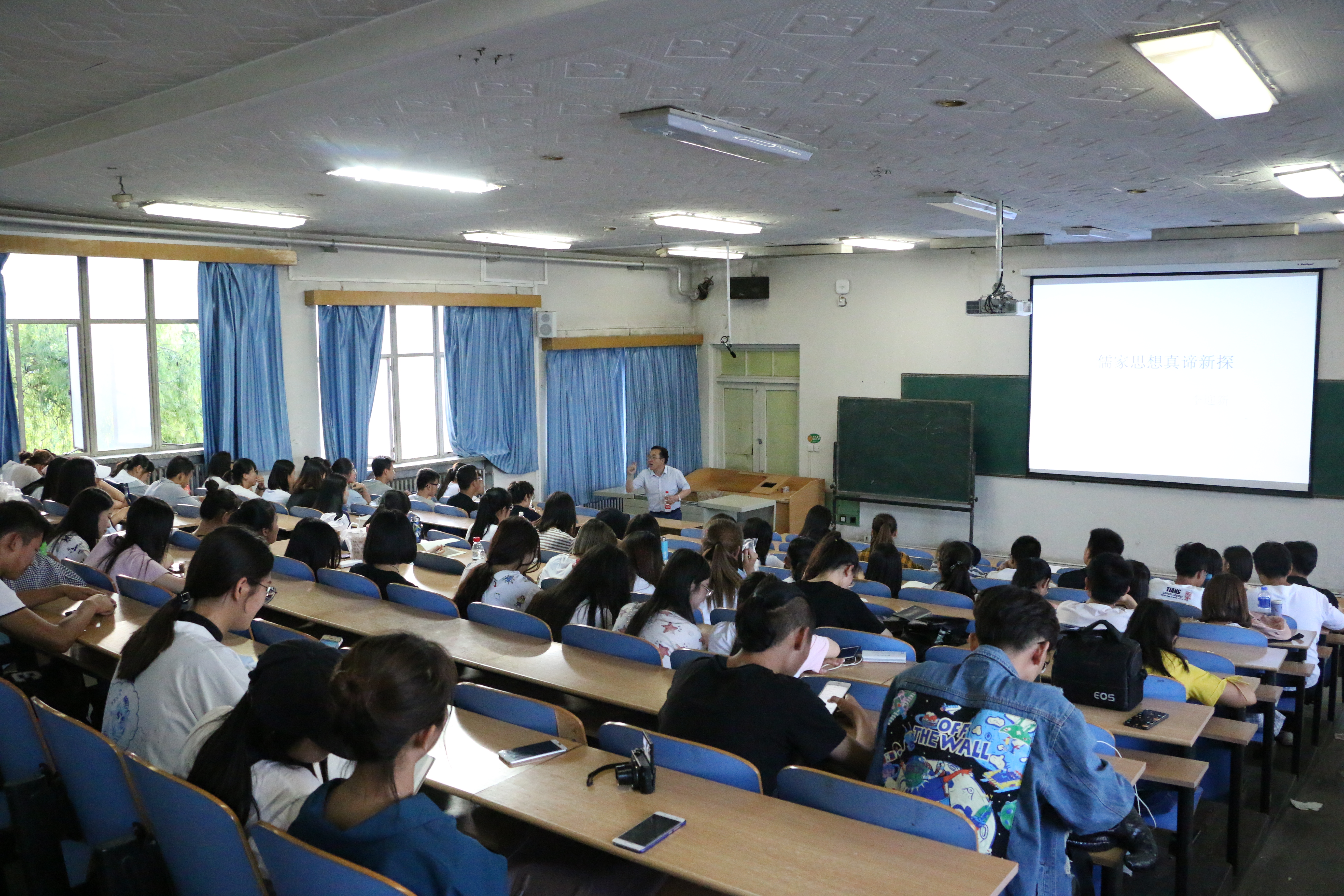 讲座上,李书记主要围绕“道”、“仁”、“忠恕”、“善”等关键词展开。他认为《礼记》“大道之行也,天下为公”中的“道”是一种美好的社会理想,同时也是一种人生的理想境界。“仁”,是孔子以一贯之的学问,是一种爱,是一种宽容,是人的良知。他表示,如果同学们学会“仁”,就能妥善处理自己与他人的关系,减少宿舍矛盾的发生。