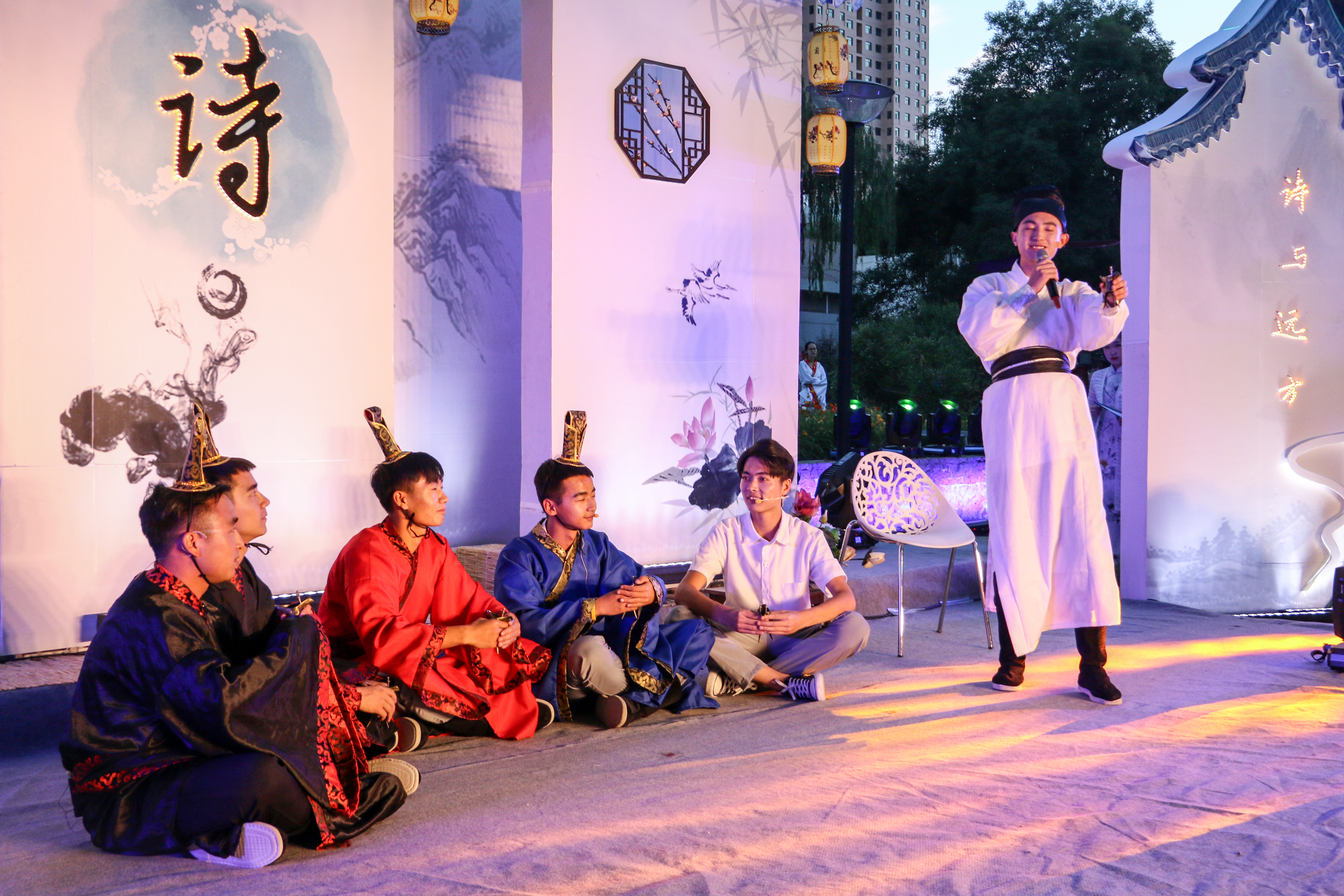 本届诗会以“诗与远方”为主题,分为文学沙龙、端午诗会、诗作品读三个篇章。10日下午,举办了文学沙龙,四位诗人作了以“翻译与诗歌”“新诗作为散文,或以散文写作的新诗”“自由的困境——汉语新诗百年批判”“旅行的意义”为主题的报告会。晚七时三十分,端午诗会在核桃树下拉开帷幕,晚会既有古典词曲吟唱、现代新诗朗诵等具有专业特色的表演,又伴有情景剧、歌舞表演、器乐演奏等艺术形式,内容丰富,形式多样,时而慷慨激昂、古韵流转;时而低徊缠绵、情思婉转。