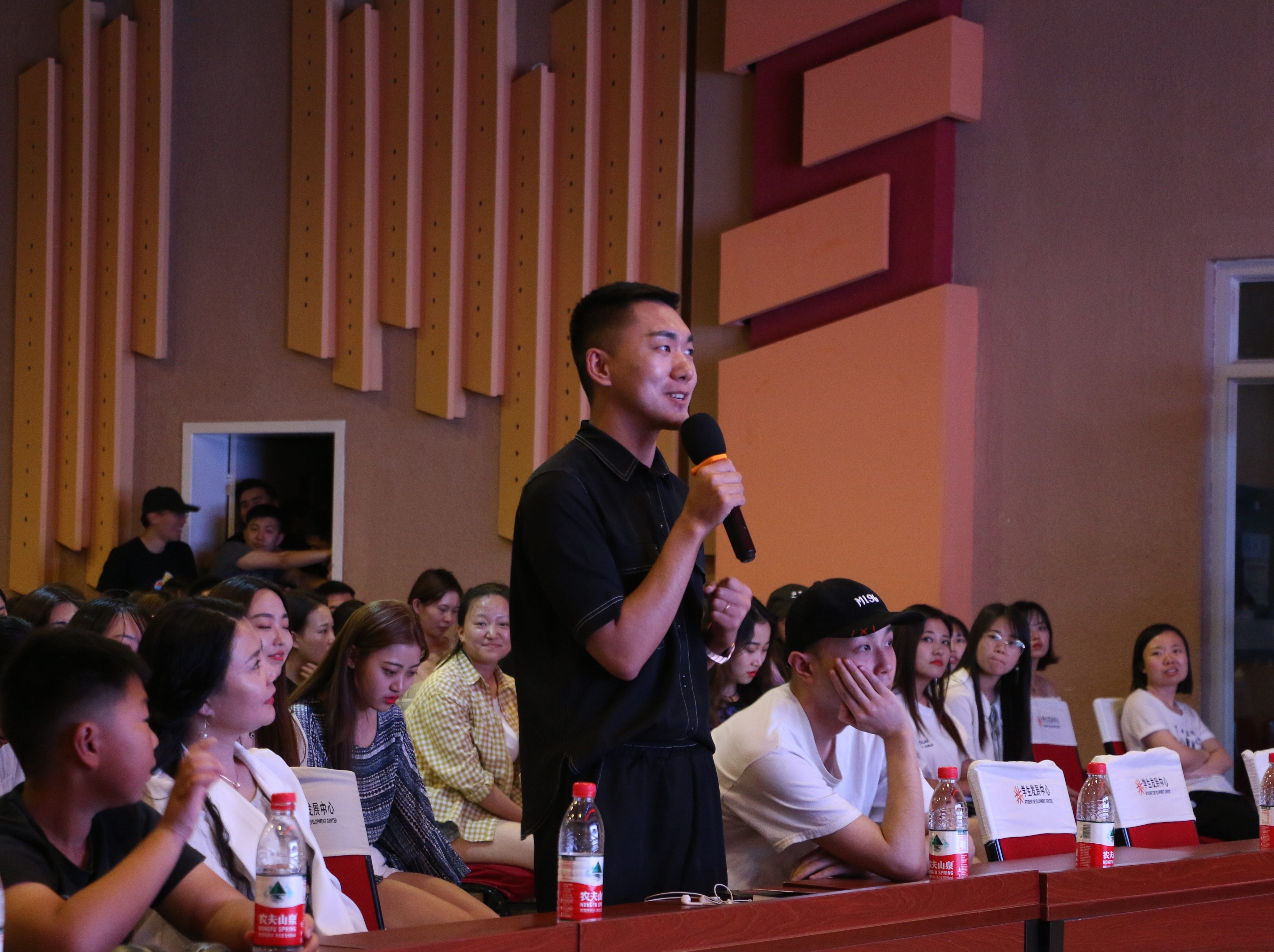 程一老师以自身成长为例,讲述他年少时的播音主持梦想与创业成功的经历。在互动环节中,现场氛围达到了高潮,与程一老师互动的同学络绎不绝,积极热情,在提问一些关于专业的问题的同时,也大胆表达出对程一老师的爱意。