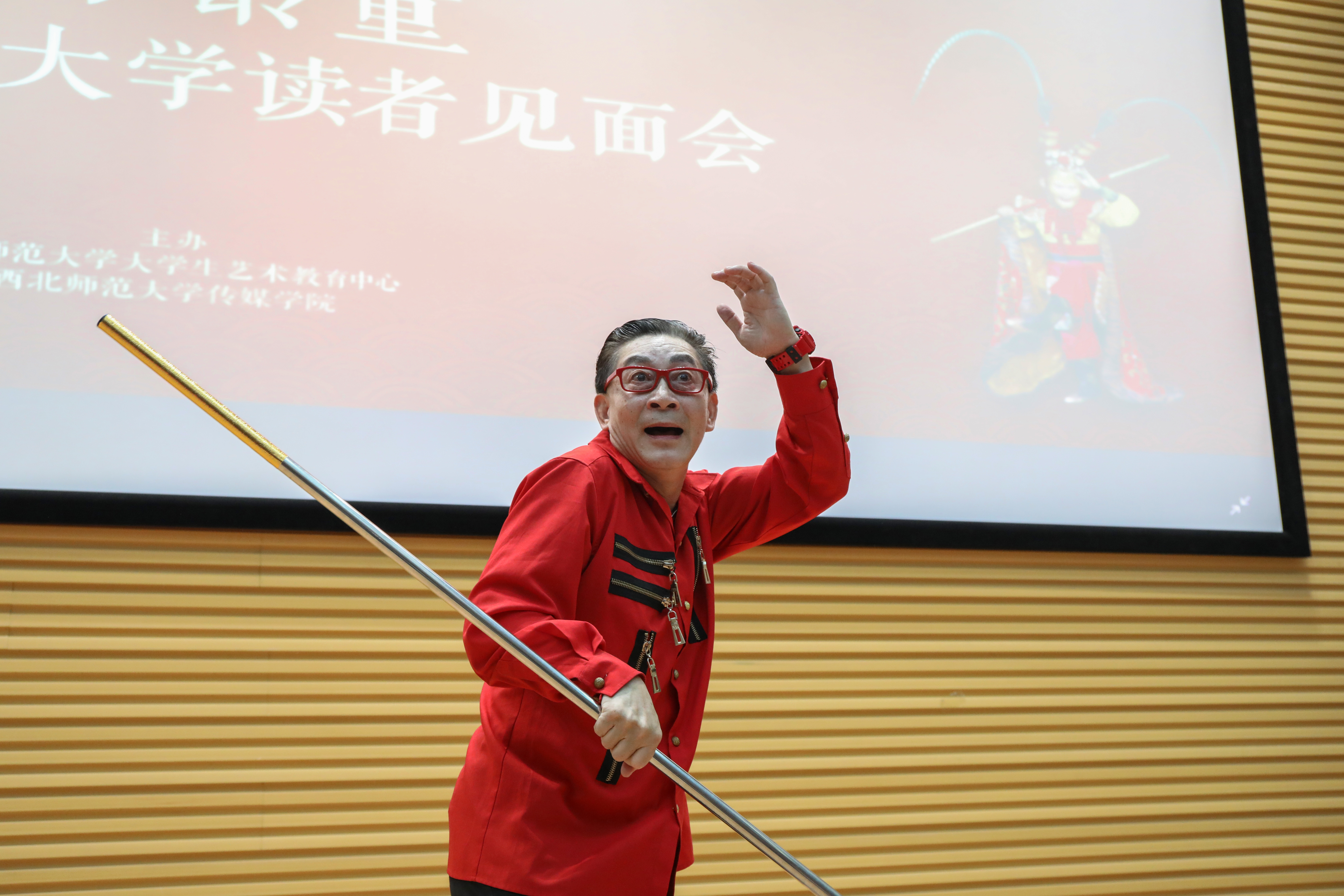 讲座过后,章老先生与在座观众开始进行零距离互动交流并进行现场表演。“我一定会继续演下去,只要演得动,永远不会离开这个金箍棒。”章老先生如是说。