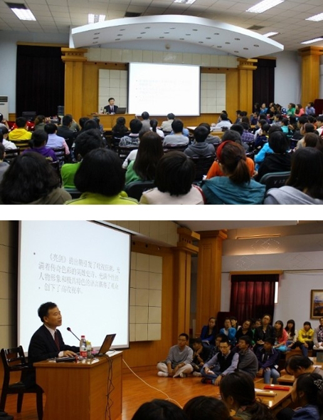 报告会上,张教授从电视剧的人物创意、叙事创意、传播创意三个方面,深入剖析了当前我国电视传播行业的创意与未来创意的发展趋势。张教授以电视剧《亮剑》为例,探讨了电视剧人物创意相关问题,使在场师生对“李云龙”这位突破传统军人形象、甚至脸谱化的人物有了更加深刻的认识。以《潜伏》为例,张教授解析了编剧的叙事创意及叙事核心价值的重要性,强调“原创虽然很难,但是必须坚持走”。以美剧《六人行》为例,张教授阐述了传播创意内涵。他认为电视剧选取话题要讲求接近性,突破理想主义、突破传统英雄主义、突破类型化与模式化,同时他对我国电视传播业寻求双向发展提出了个人独到的见解。报告会结束之余,张教授为我校学生提出了三点学习建议,与之共勉:善于辨别,吸其精华,弃其糟粕。
