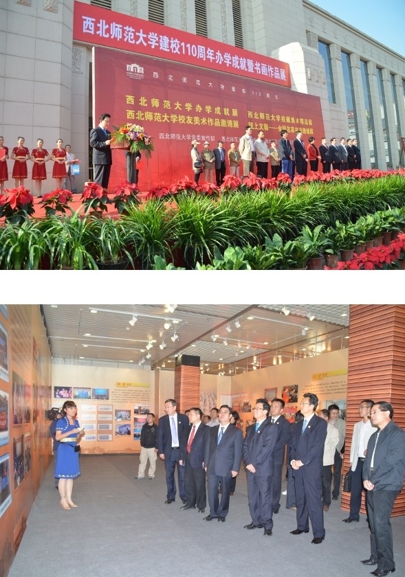 9月14日上午9:00,MG冰球突破官网网站建校110周年办学成就暨书画作品展在甘肃省博物馆隆重开幕。文化部副部长王仲伟、甘肃省人民政府副省长冉万祥、中国书法家协会副主席张改琴、甘肃省教育厅厅长王嘉毅、MG冰球突破官网网站党委书记刘基、党委副书记于树青等出席开幕式。冰球官网40余名师生代表参加了本次活动,在现场感受百年母校桃李满天下的深邃魅力。