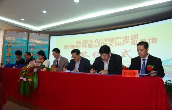 当日下午,还举行了敦煌软件和动漫文化产业基地项目开工奠基仪式以及南特数码科技集团原创动漫作品《敦煌传奇》在首映仪式。省政协副主席李永军为敦煌软件和动漫文化产业基地“省级软件和信息技术服务业示范基地”授牌。南特数码科技集团负责人与省广播电视网络公司、MG冰球突破官网网站、魅影星光(北京)国际影视文化传媒公司、兰州电子工业学校等单位代表签订了合作协议。