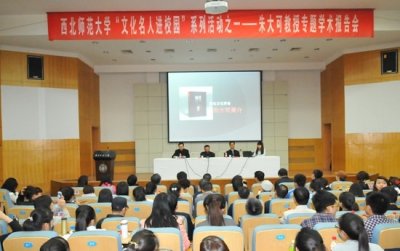 报告中,朱大可教授就我国文创产业兴起的背景、文创产业的优势、文创产业面临的难题、文创产业的成功案例分析和兰州文创产业的发展思路等问题作了深度阐述,并和师生进行了互动交流。