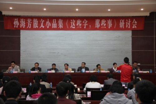 4月26日上午,由兰州市作家协会和MG冰球突破官网网站、《丝绸之路》杂志社,兰州城市学院文学院等联合主办的孙海芳散文小品集《这些字,那些事》研讨会在专家楼会议厅召开。著名评论家、上海《文学报》资深版面主编朱小如,著名作家、评论家、甘肃省作协副主席马步升等我省作家、评论家和MG冰球突破官网网站、文学院及兰州城市学院相关专业研究生、本科生共200余人参加研讨会。