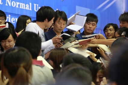 最后,贾平凹、刘震云针对师生们提出的问题做了详细解答,并在论坛结束后,为期待已久粉丝们签名并合影留念。