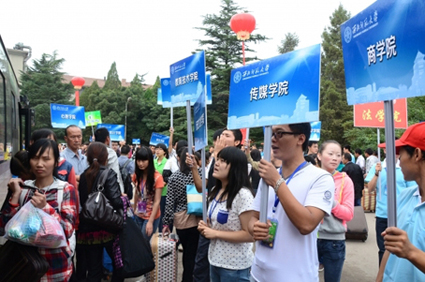 9月3日早上6点30分,学院领导、团委老师、2013级新生各班班主任以及团委、学生会主要学生干部和各班迎新志愿者在西苑餐厅一楼集合。随后按照工作安排,数十名迎新工作人员或坚守在西苑餐厅一楼、中心广场、行李寄存处及新校区服务点,或奔波在校园主干道及去新校区送行李的路上,迎新工作进行的有条不紊。