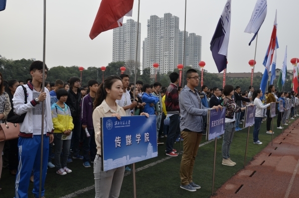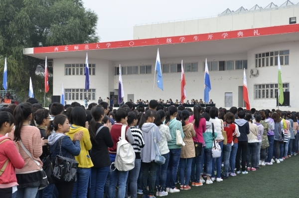 9月5日上午,MG冰球突破官网网站2013级新生开学典礼在西操场举行,冰球官网播音与主持艺术专业新生王媛代表全校新生发言。