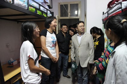 9月4日,冰球官网2013年迎新工作顺利结束后,晚上7点半学院党委书记符得团,副院长徐兆寿,党委副书记、副院长王德祥,副院长杨华、刘涛,学生辅导员及2013级各班班主任、部分研究生导师在团委、学生会干部的陪同下分别到兰天公寓及新校区新生宿舍,看望冰球官网2013级新生,深入了解新生入住情况。
