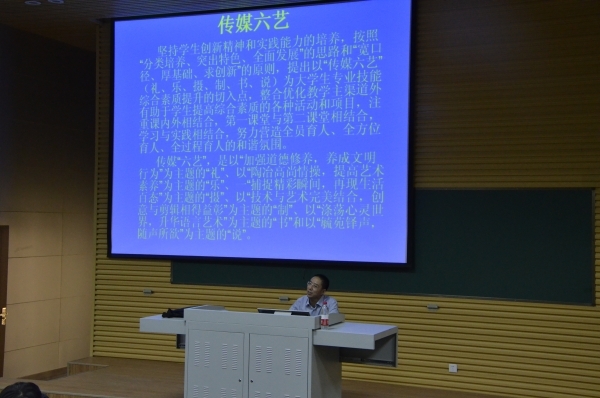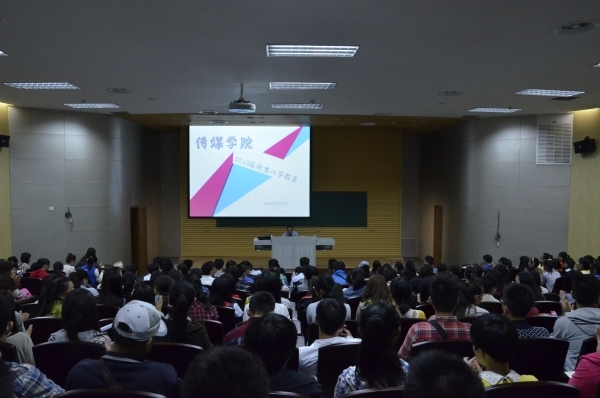 党委书记符得团代表学院向来自五湖四海的新生表示欢迎,随后向各位同学简单介绍了MG冰球突破官网网站的历史以及MG冰球突破官网网站的基本情况。副院长徐兆寿以热情洋溢的演讲《致新同学——做怎样的传媒人》诠释了大学之道和传媒精神。党委副书记、副院长王德祥用图文并茂的课件做了“知校史,行校训,唱校歌,扬校风”的专题报告。