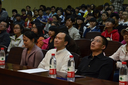 秦川老师结合自己的作品,向在座师生简要介绍了自己十年以来创作情况,与大家分享了他拍片过程中的酸甜苦辣与经验心得,并将自己2013年的新作《敦煌伎乐天》第四集《仙乐飘飘》展映给在座师生。《仙乐飘飘》以敦煌音乐文化为切入点,以酷爱敦煌乐器研究者的探索与奔走为线索,忠实记录了敦煌音乐的博大精深以及在当下的发展困境。而接下来放映的纪录片《黑戈壁·黑喇嘛》第一集《丹毕喇嘛的城堡》则向观众生动再现了20世纪初在黑戈壁地区称霸一时的土匪黑喇嘛丹毕加参的传奇人生和他身上的未解之谜。《黑戈壁·黑喇嘛》曾获中国广播电视协会主办的“第五届中国纪录片国际选片会”十佳纪录片奖,并参加了第五届半岛国际纪录片节,这也是甘肃的纪录片第一次在阿拉伯世界发出了自己的声音。