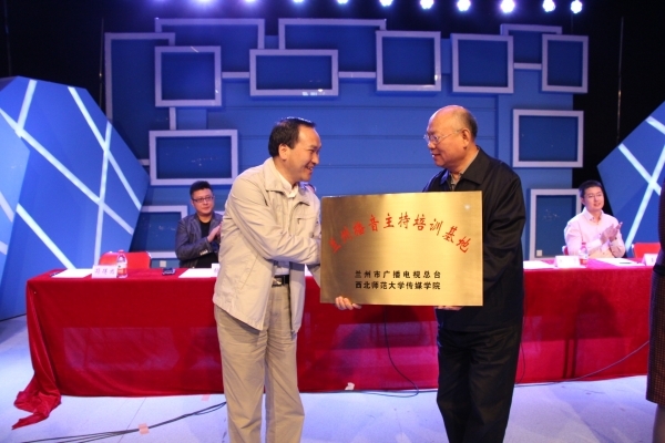 9月28日,由MG冰球突破官网网站与兰州市广播电视总台合作建立的“兰州播音主持培训基地”成立暨合作协议签约仪式在兰州市广播电视总台演播厅举行。原中国国际广播电台台长、中国广播电视协会播音主持委员会会长李丹,兰州市委常委、宣传部长周丽宁,MG冰球突破官网网站副校长刘玉泉,中央电视台国际频道主持人张腾岳,中央人民广播电台经济之声主持人王强,兰州市广播电视总台台长王韧,MG冰球突破官网网站党委书记符得团,党委副书记、副院长王德祥及兰州市广播电视总台负责人、主持人播音员,MG冰球突破官网网站播音与主持艺术专业40余名学生参加了会议。