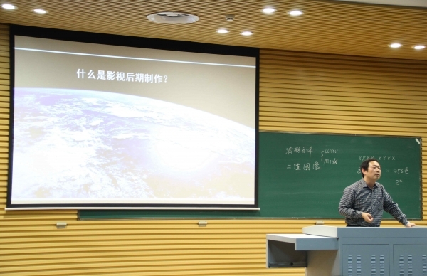 李可博士结合自己的作品向在座学子分析了《闪闪红星》、《天下无贼》、世博会《历程》、《大秦帝国》等优秀影片精美的后期特效制作及专业人员精湛的技术。