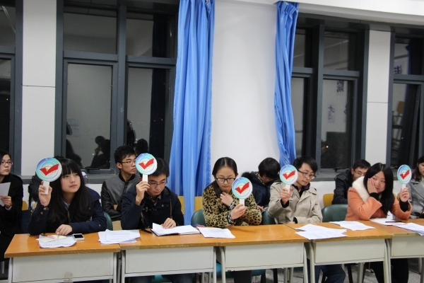 2013级播音与主持艺术1班李雅静、2013级广播电视编导专业周艾、2012级新闻学1班李维平、叶进、2012级播音与主持艺术1班刘畅、2011级新闻学1班孙谦六位同学分别以迥异的风格和自信的风采亮相大赛,他们在四个环节中分别展示了个人才艺、与五位评委积极互动并认真回答评委们具有针对性的提问。他们或伶俐干练,或幽默风趣,或极具感染力,均以出色的表现完成了比赛。初赛结果将在近日公布,进入复试的同学将代表学院参加学校本学年的“职为你开”大赛。