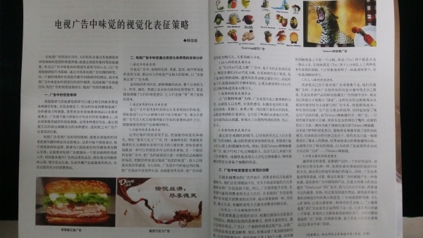 冰球官网2011级播音与主持艺术班学生韩佳璇在北大中文核心期刊《当代电视》2014年第6期(总第314期)发表学术文章《电视广告中味觉的视觉化表征策略》。